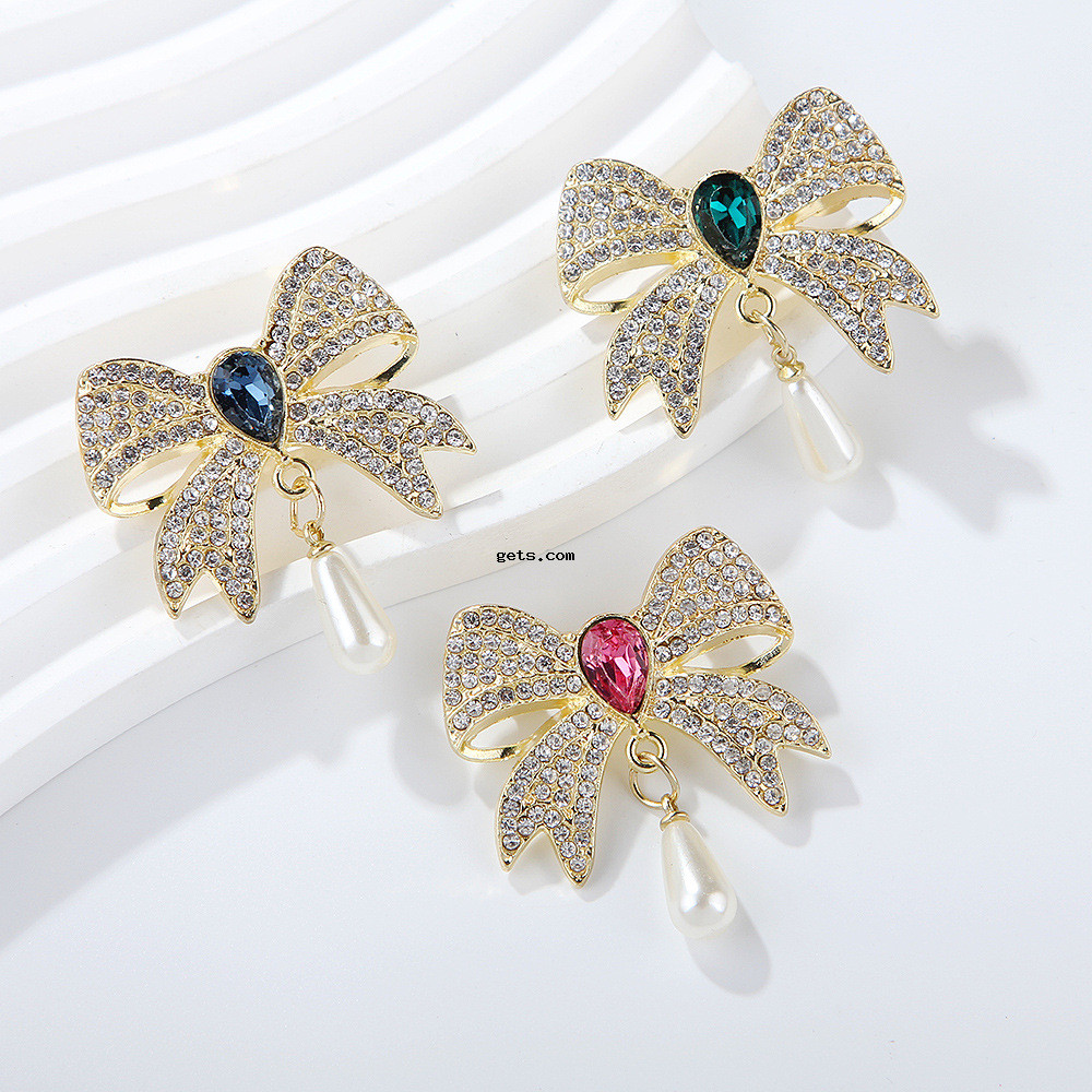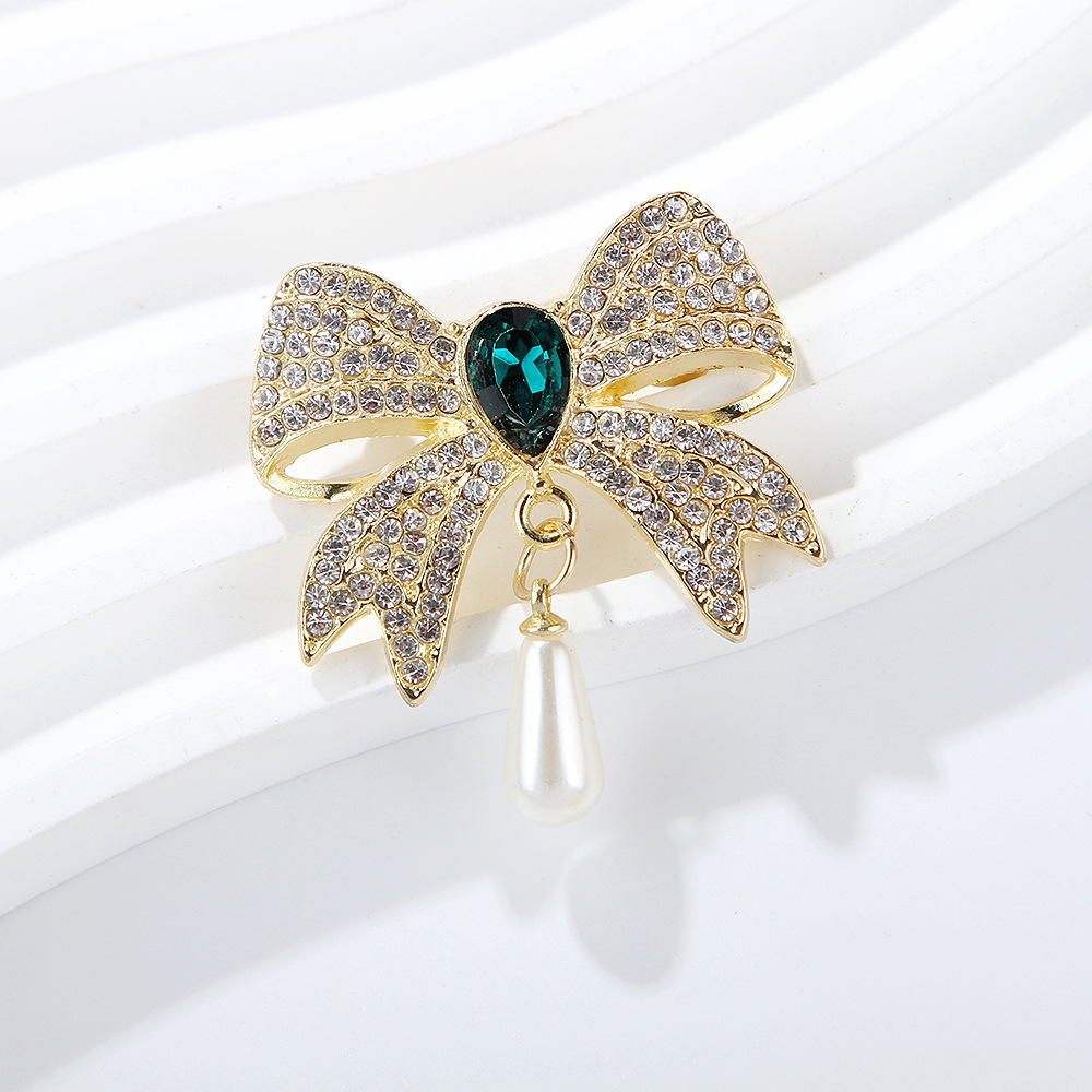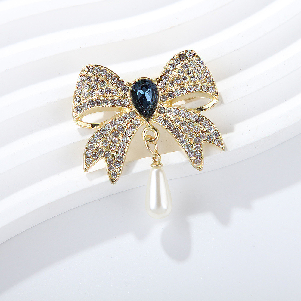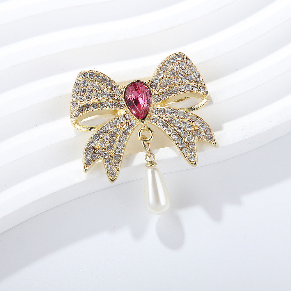 - Rhinestone Brooch, Copper Alloy, Bowknot