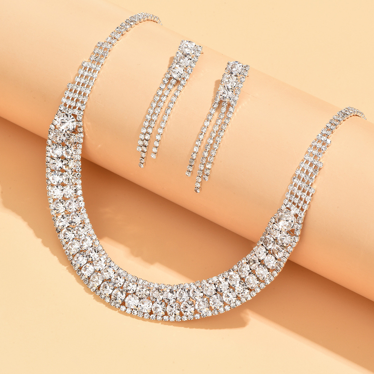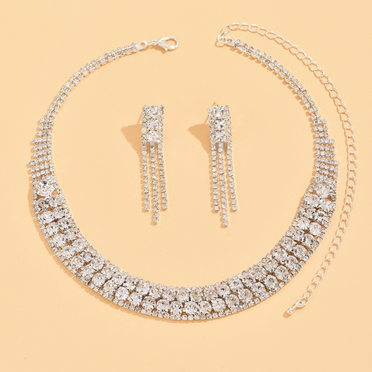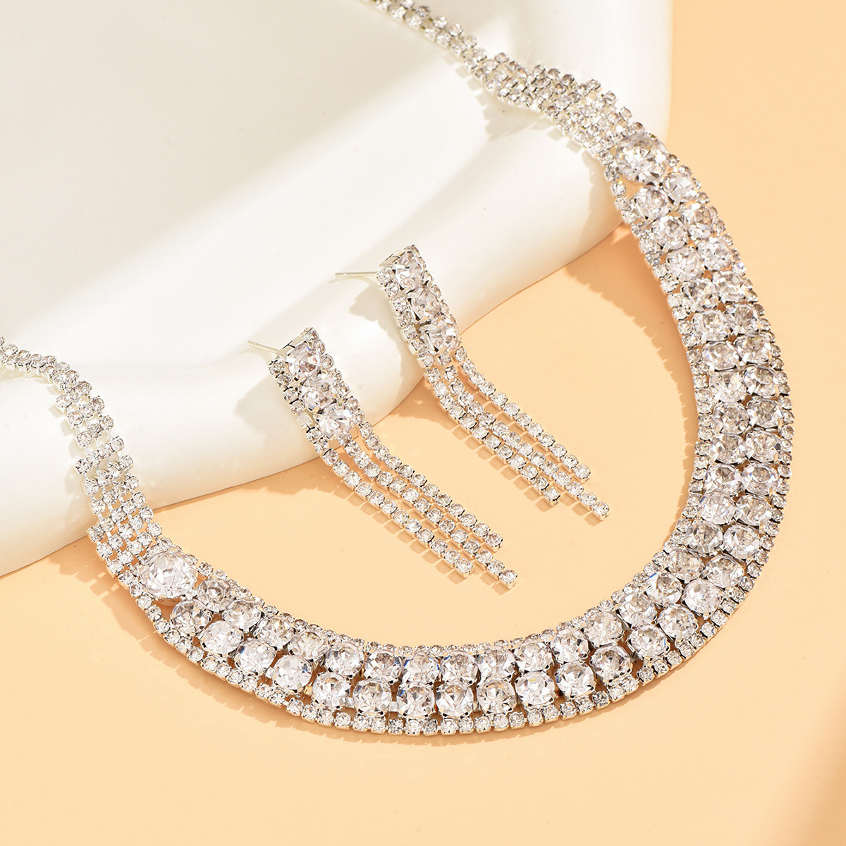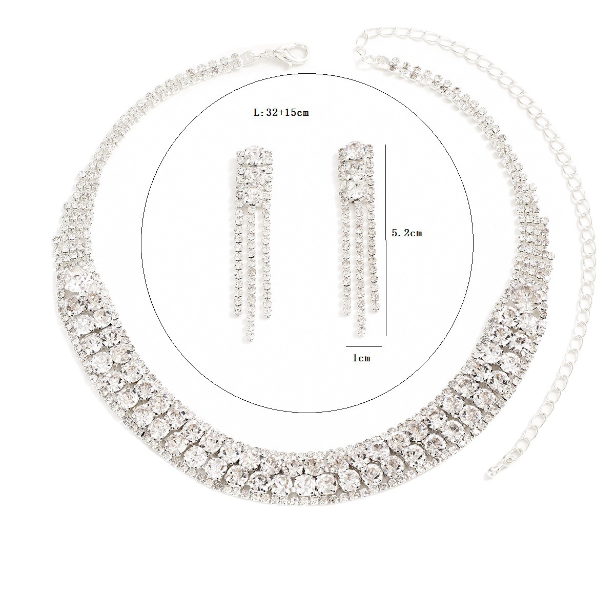 Tibetan Style Jewelry Set, earring & necklace, silver color plated, 2 pieces & for woman & with rhinestone, Sold By Set