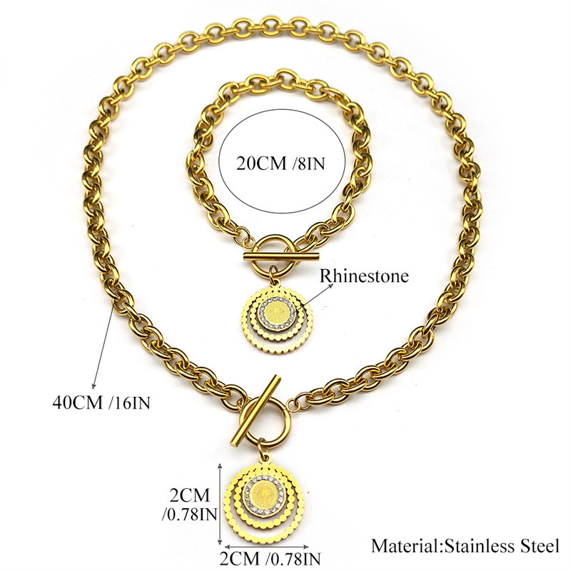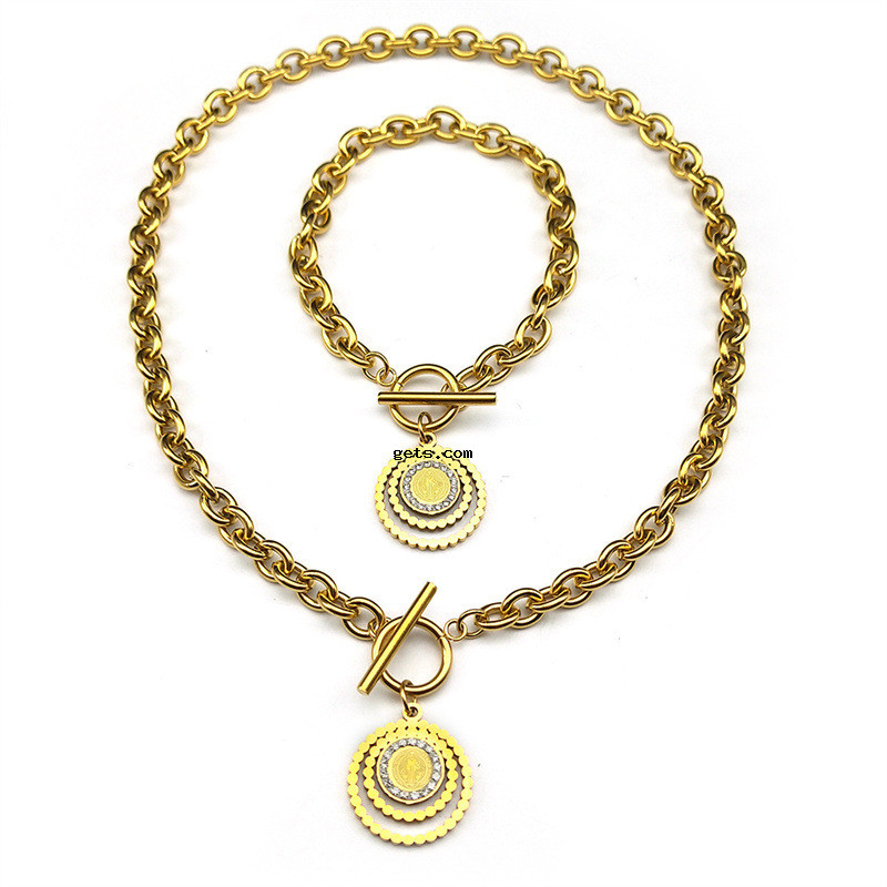 Rhinestone Stainless Steel Jewelry Set, bracelet & necklace, 304 Stainless Steel, plated, 2 pieces & Unisex & with rhinestone & hollow, more colors for choice, Sold By Set