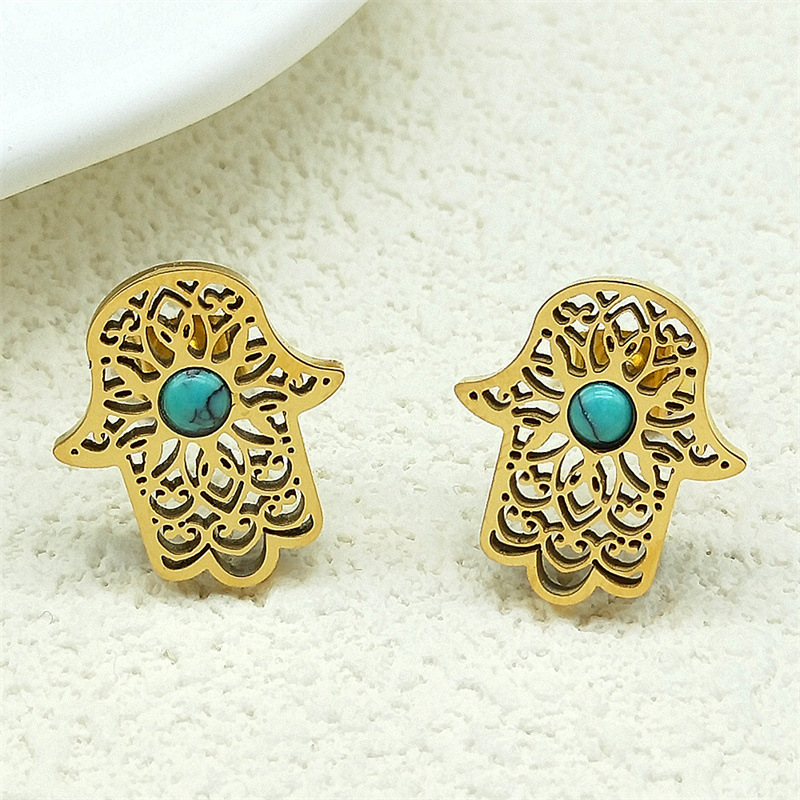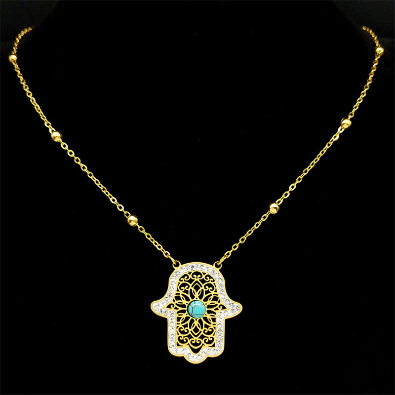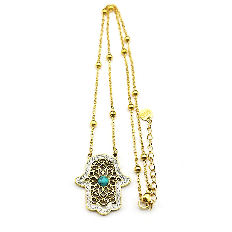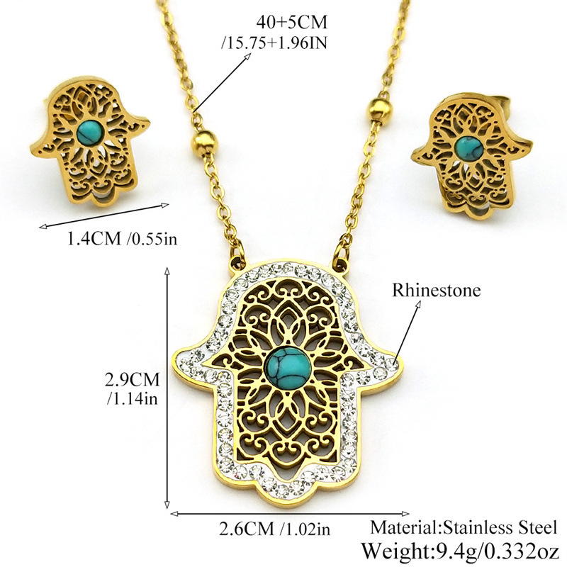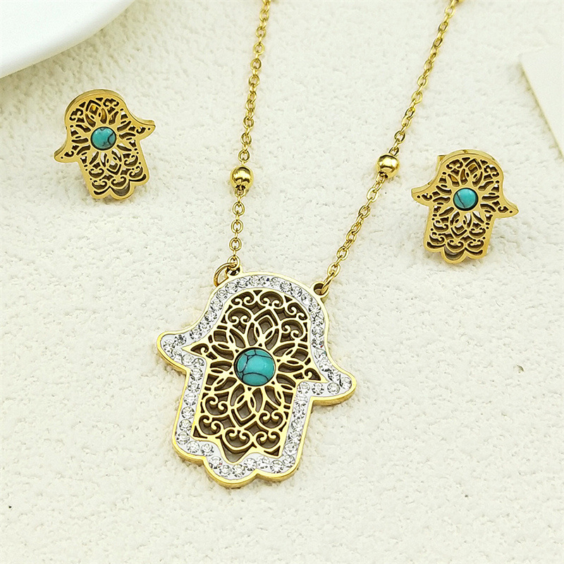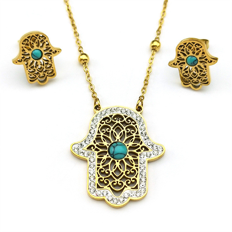 - Rhinestone Stainless Steel Jewelry Set, earring & necklace, plated