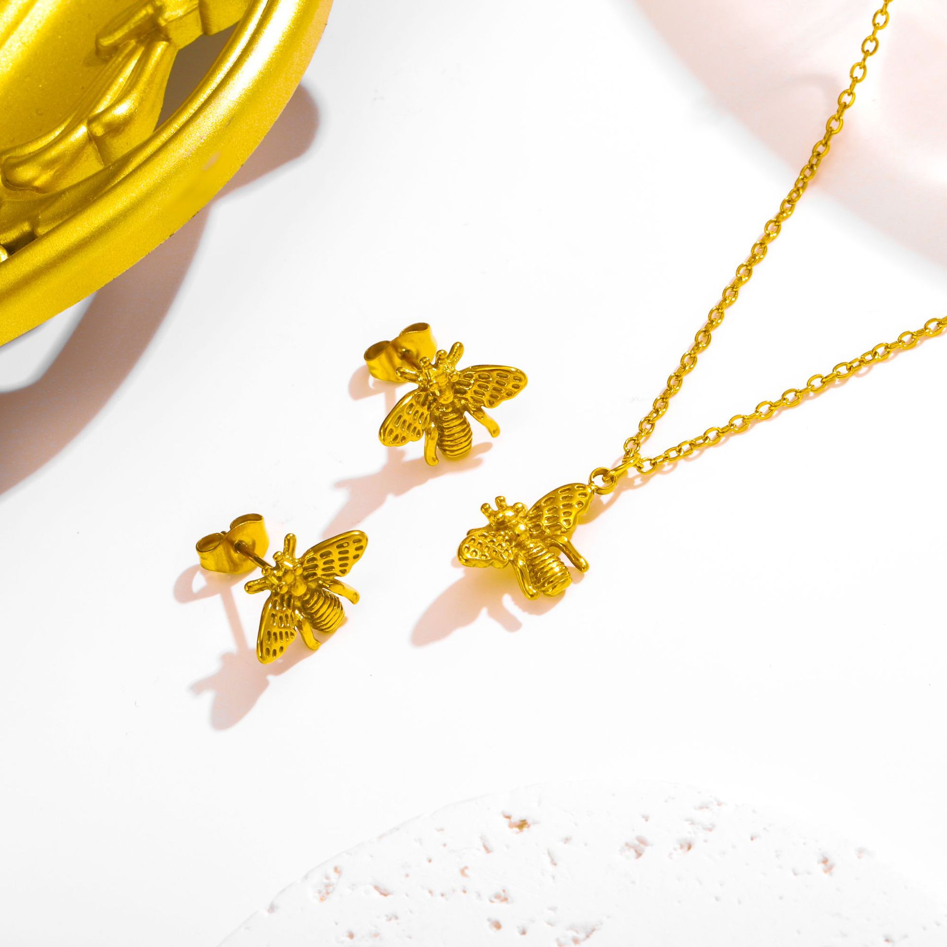 - Rhinestone Stainless Steel Jewelry Set, earring & necklace, plated
