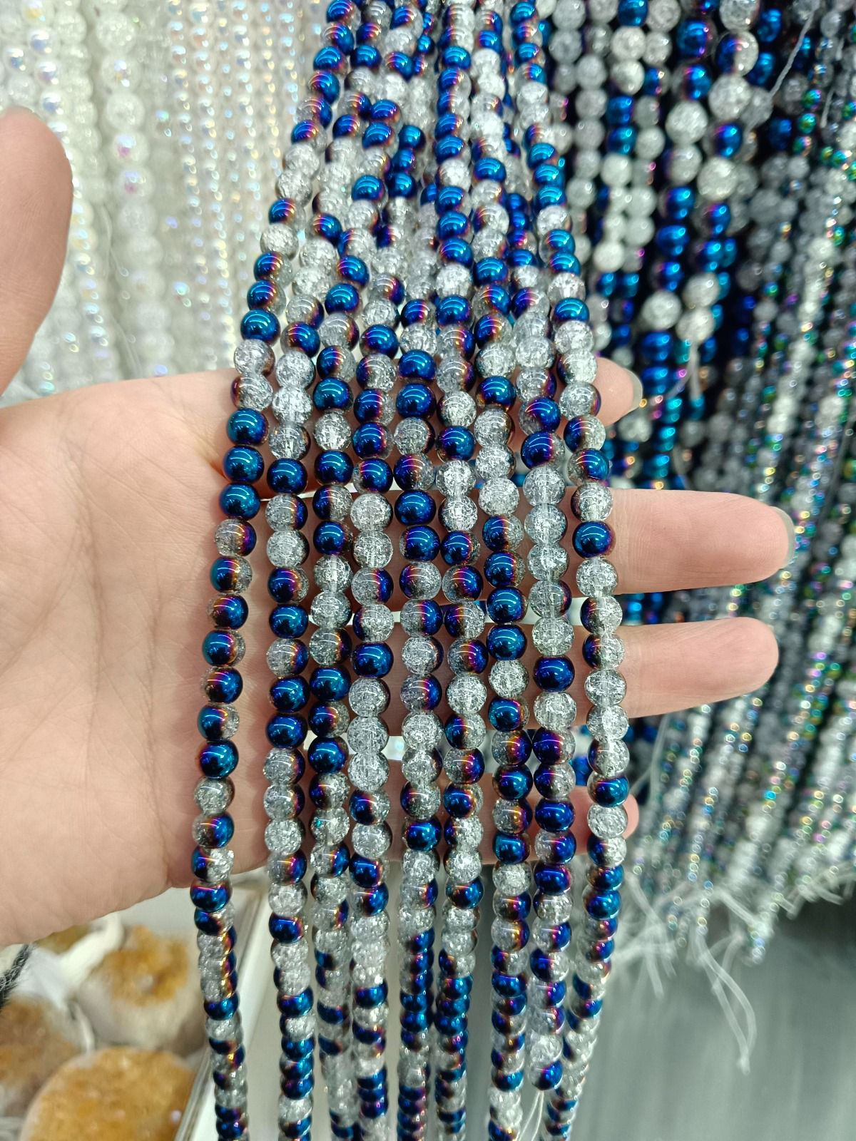 - Round Crystal Beads, polished, DIY & crackle