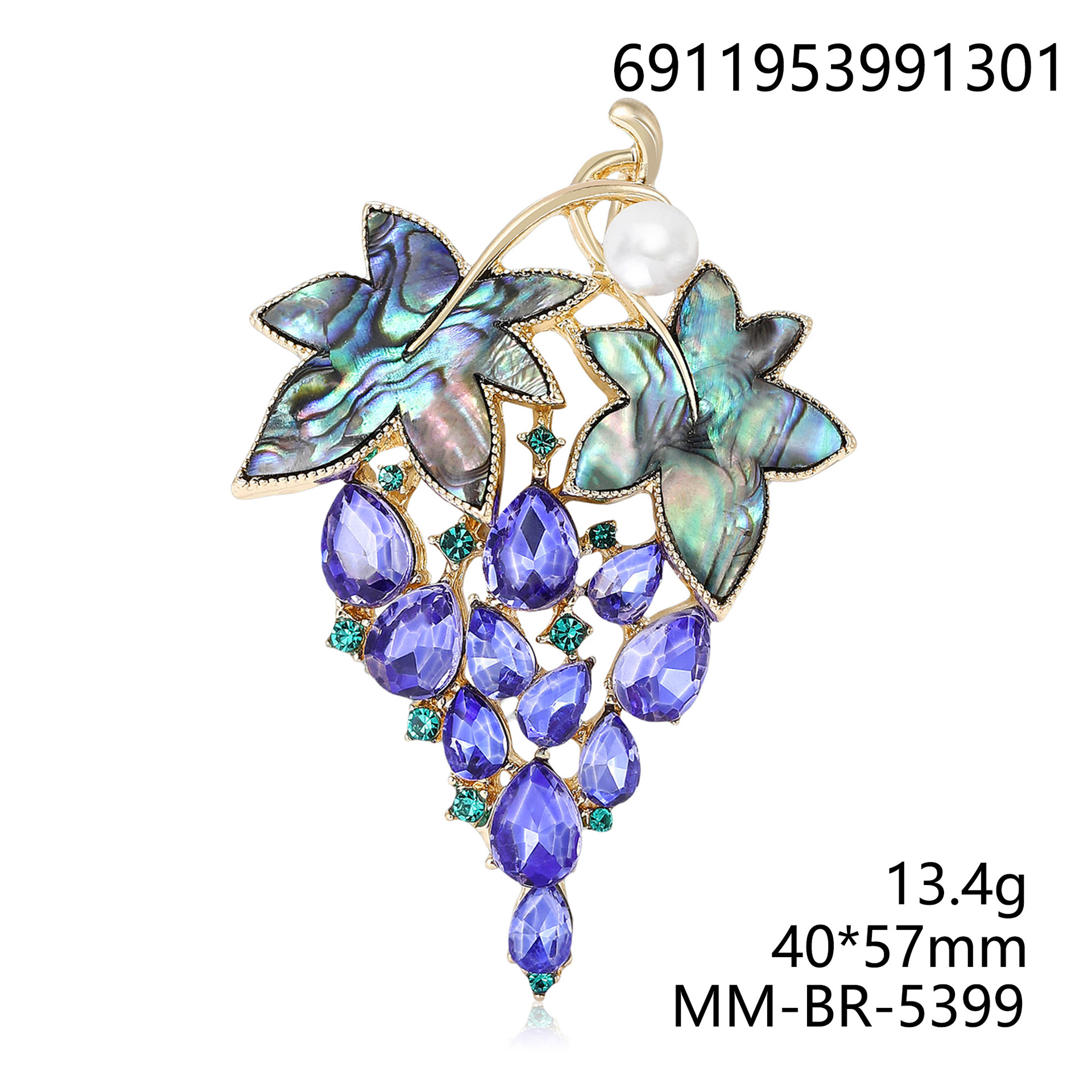 - Shell Brooch, with Tibetan Style, Leaf