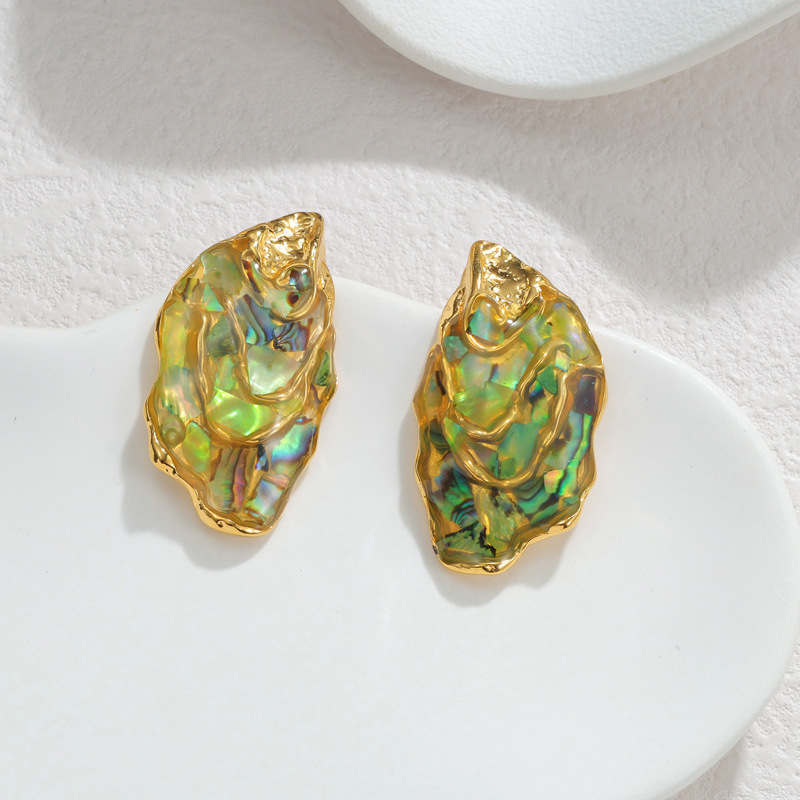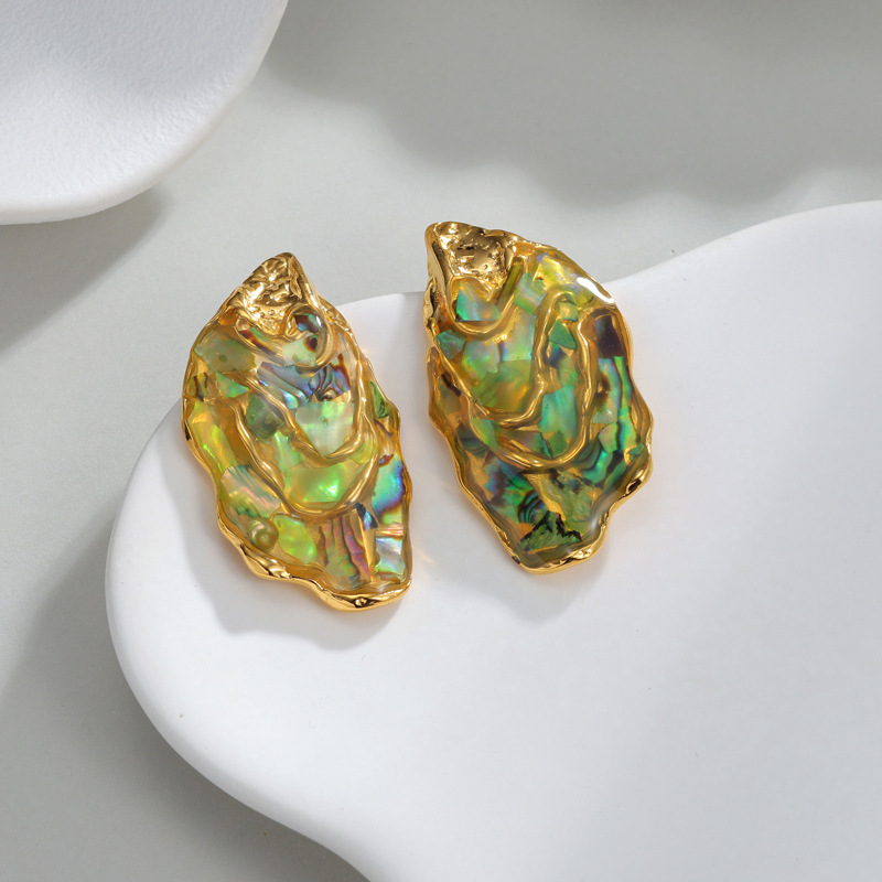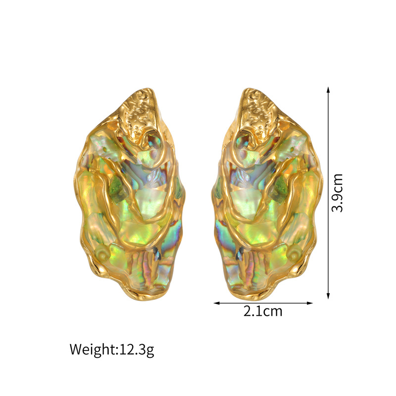 - Shell Earrings, Abalone Shell, with 304 Stainless Steel