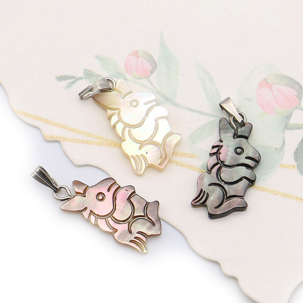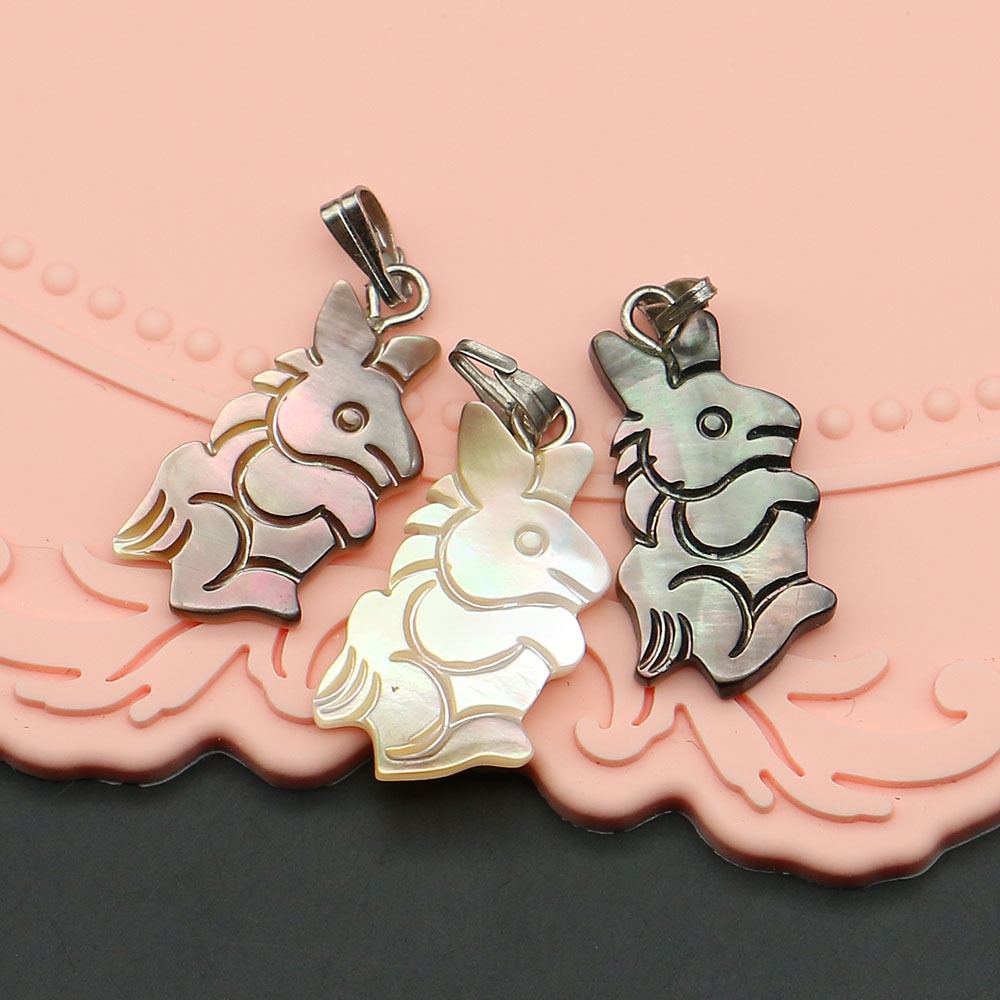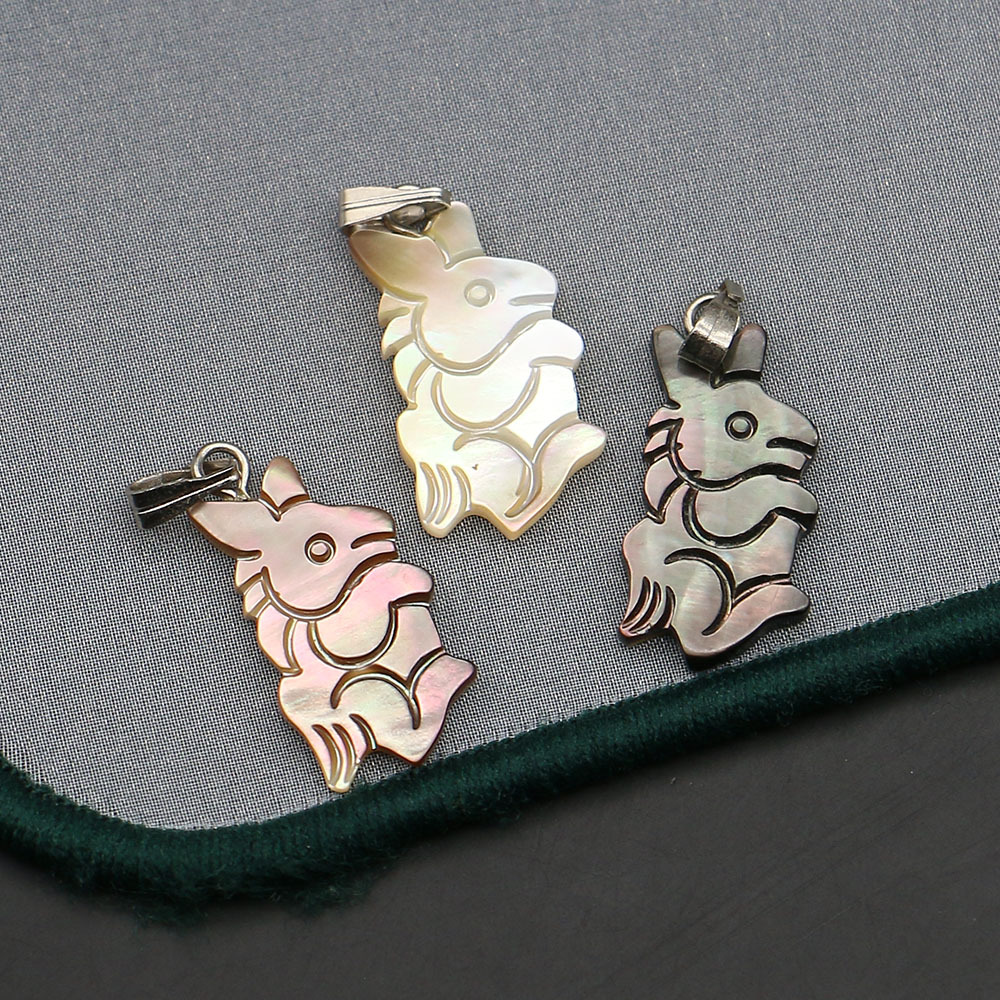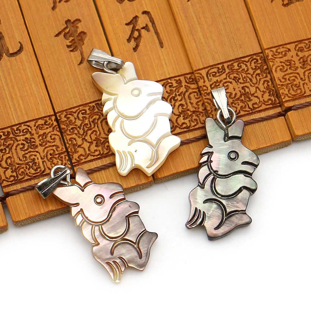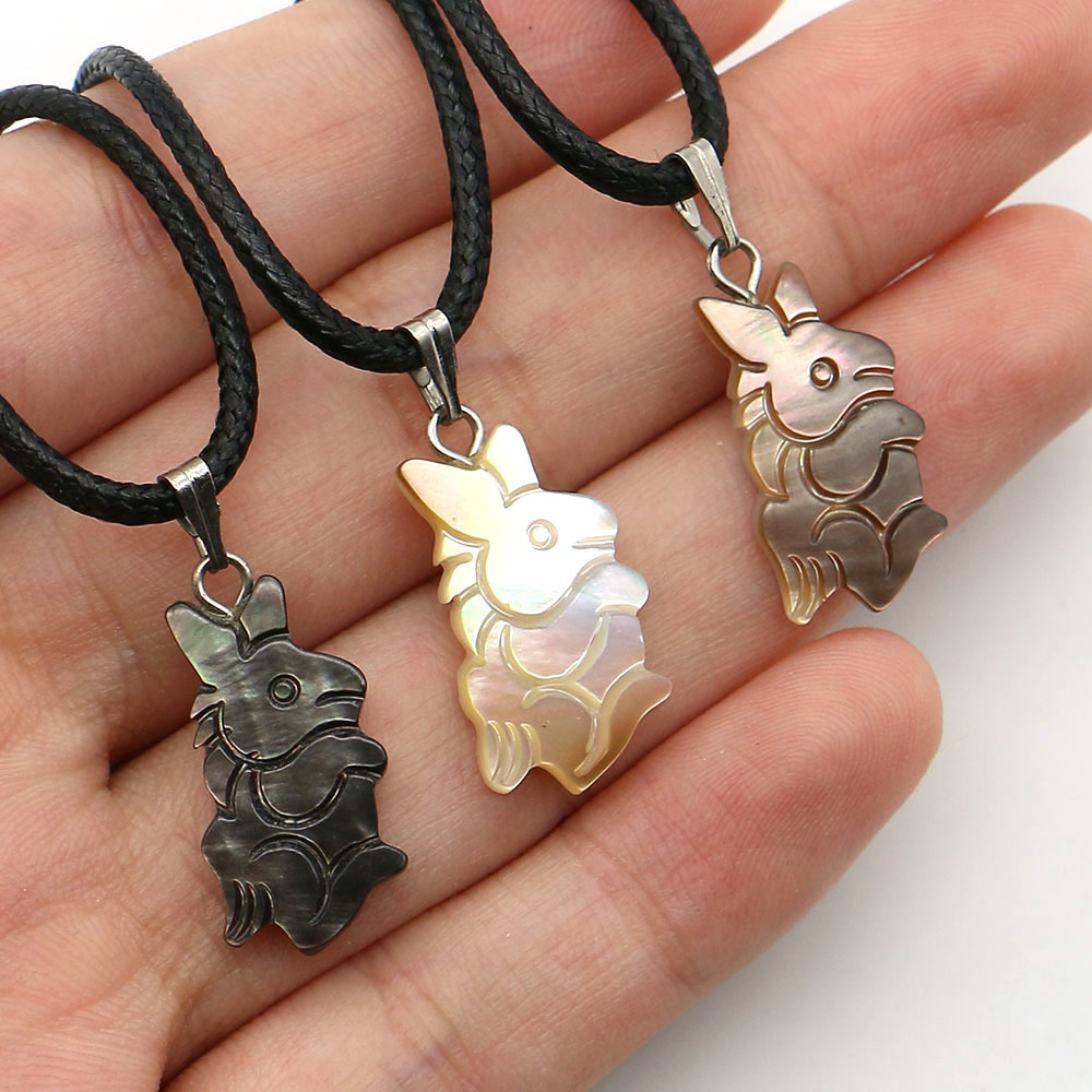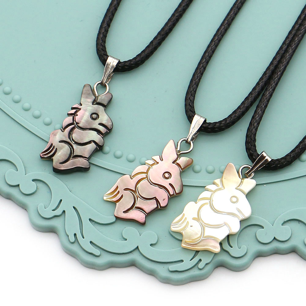 Shell Pendants, Natural Seashell, with Wax Cord & Iron, Rabbit, DIY, more colors for choice, 11x22mm, Sold By PC