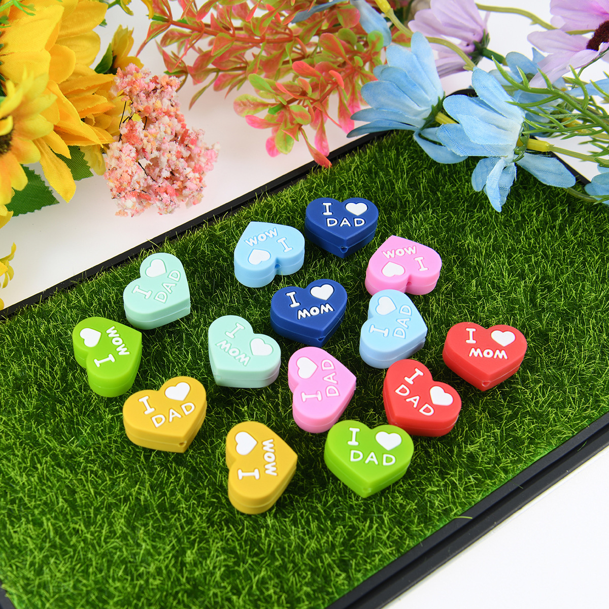 Silicone Beads, FDA Silicone, Heart, epoxy gel, DIY & for children & with letter pattern, more colors for choice, 17x17mm, Sold By PC