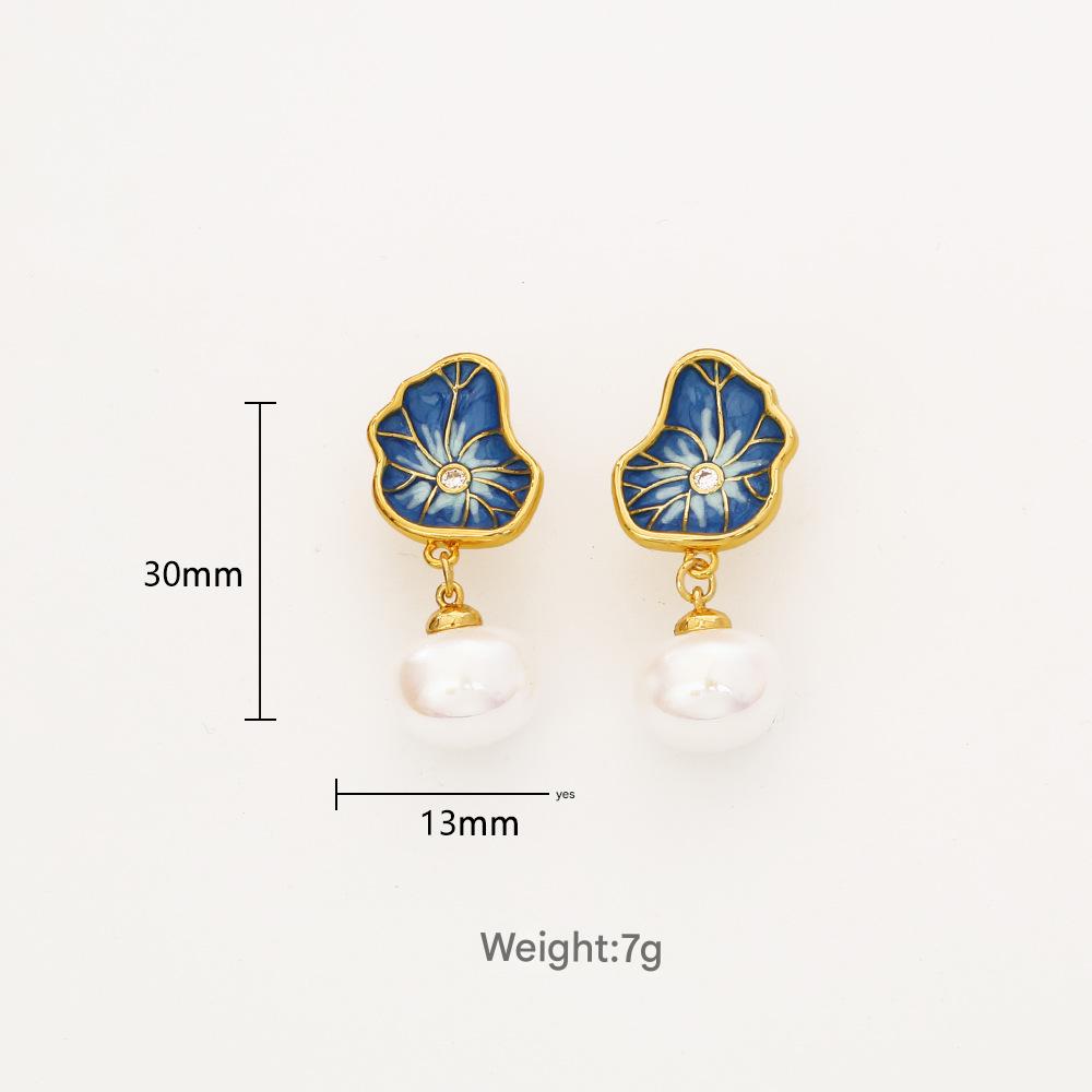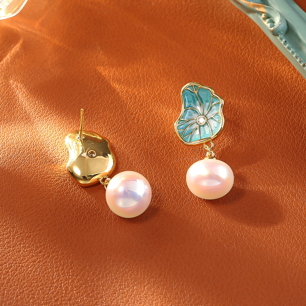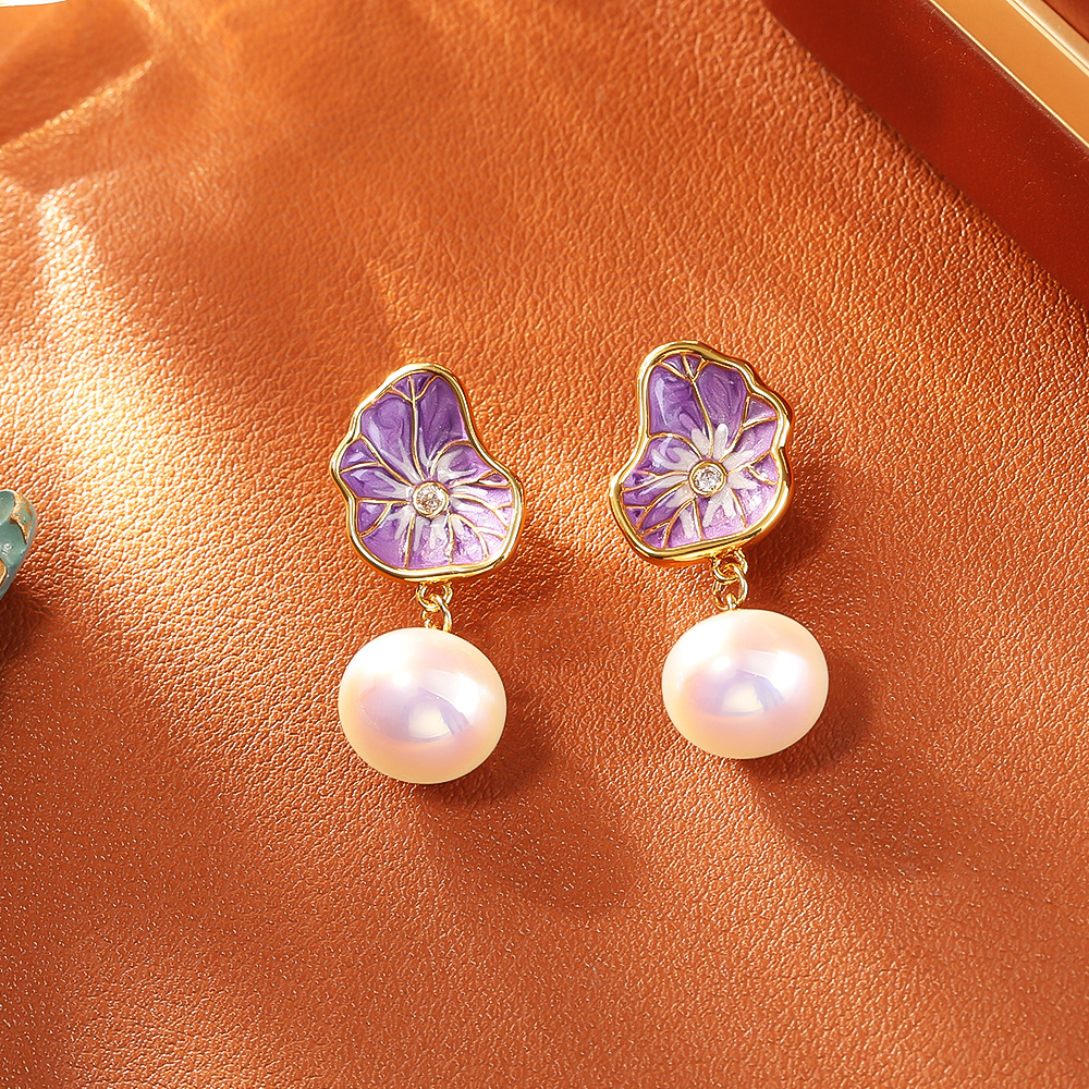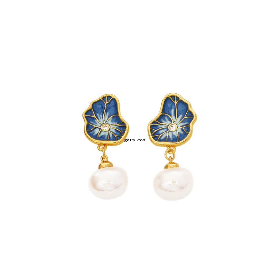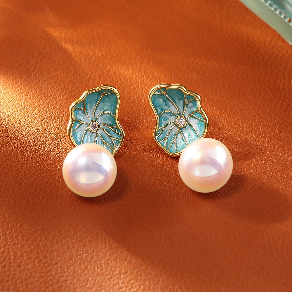 South Sea Shell Earring, Brass, with Shell Pearl, Lotus Leaf, real gold plated, micro pave cubic zirconia & for woman & enamel, more colors for choice, Sold By Pair