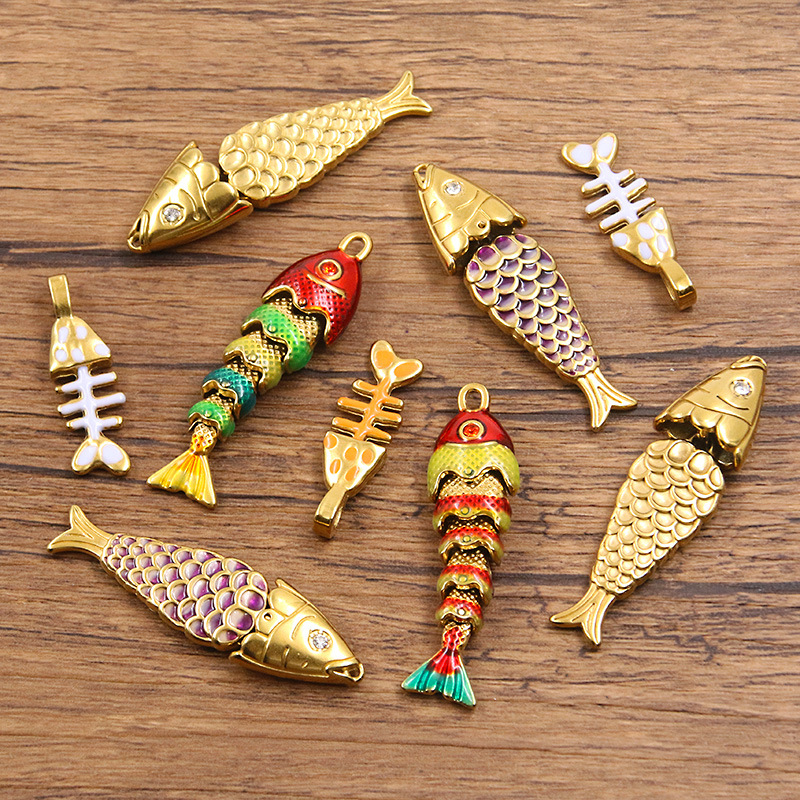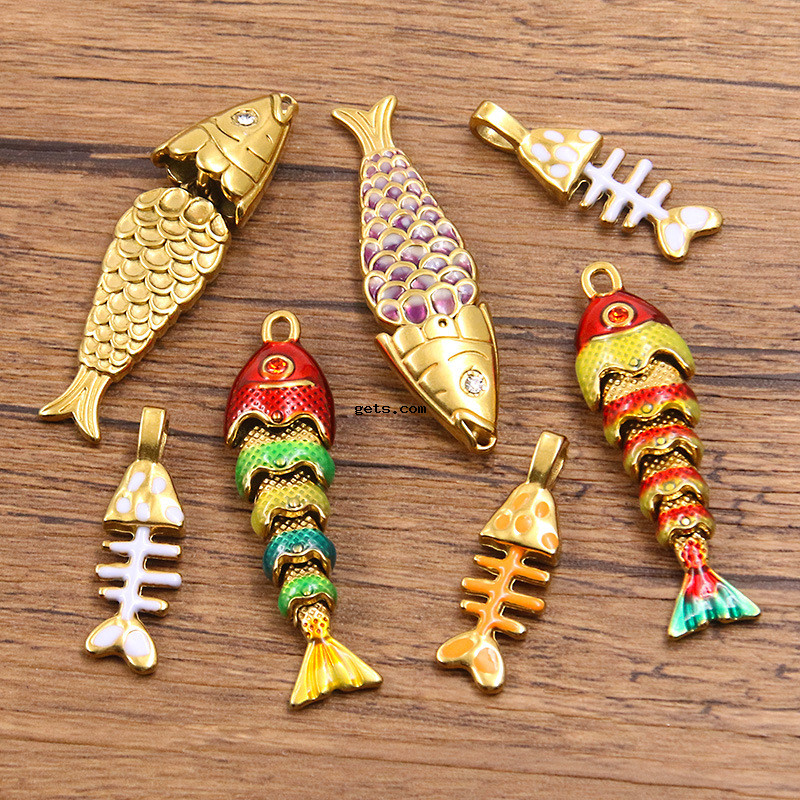 Stainless Steel Animal Pendants, 304 Stainless Steel, Fish, plated, DIY & enamel, more colors for choice, 100PCs/Bag, Sold By Bag