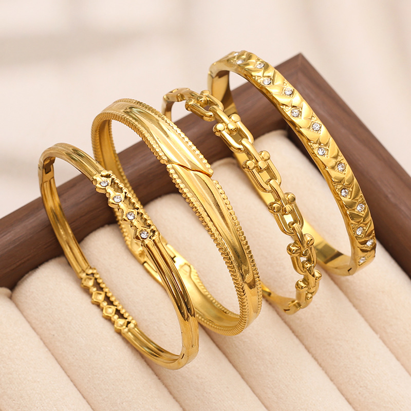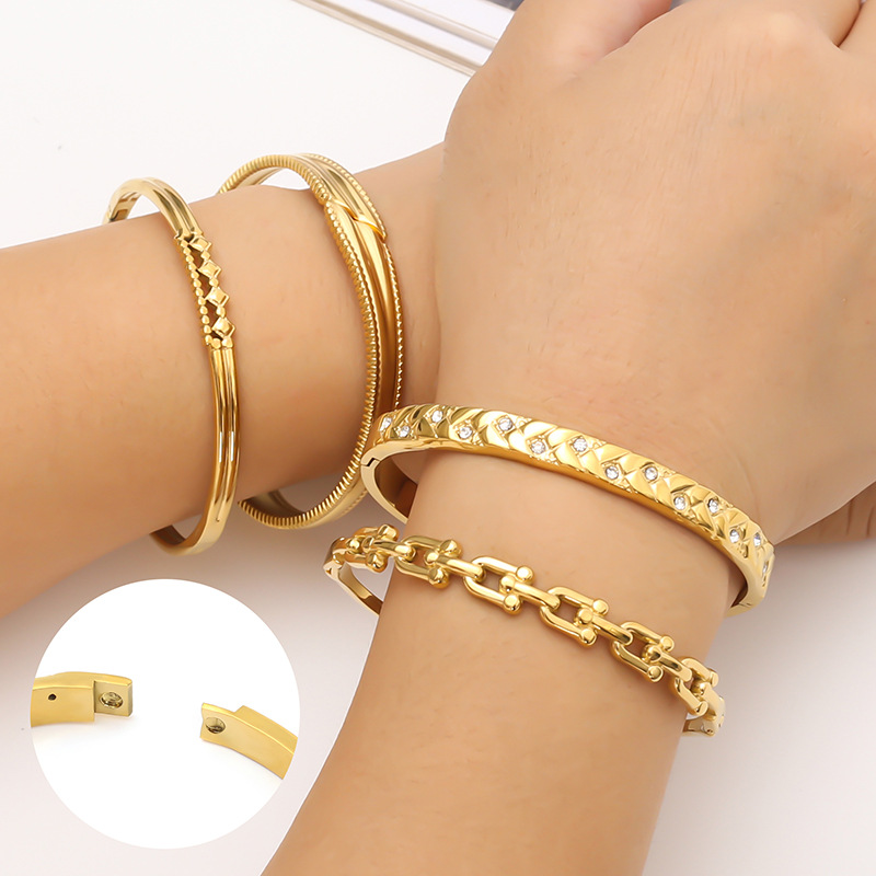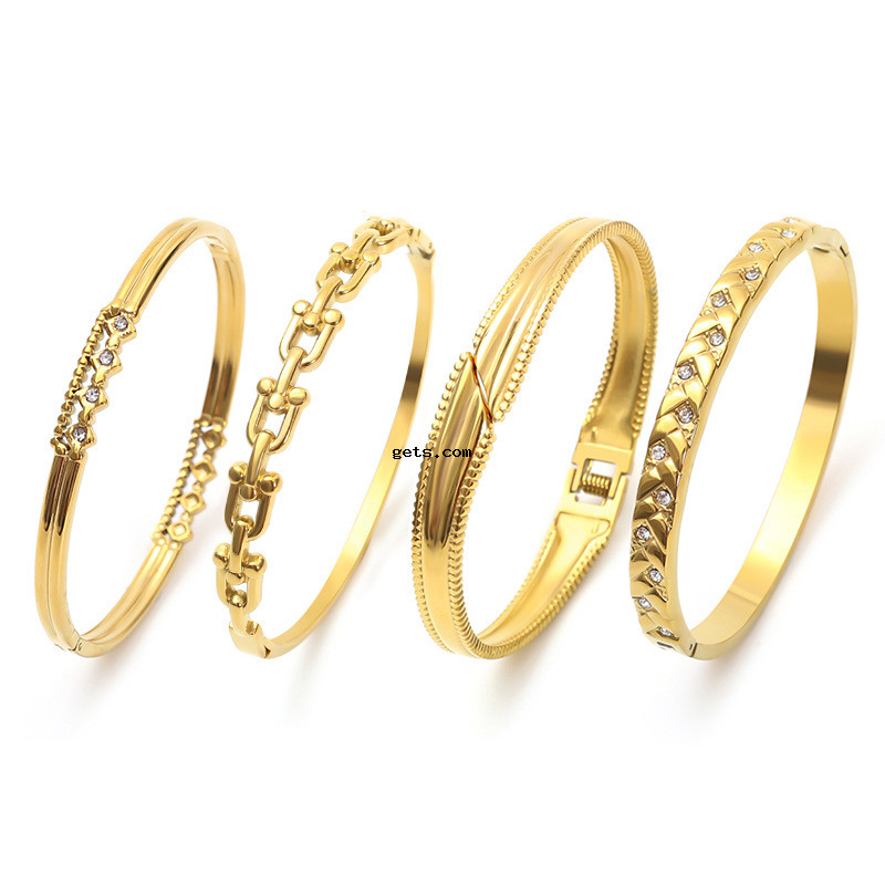- Stainless Steel Bangle, 304 Stainless Steel, gold