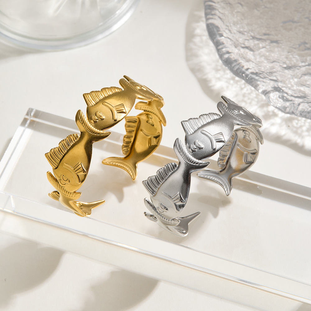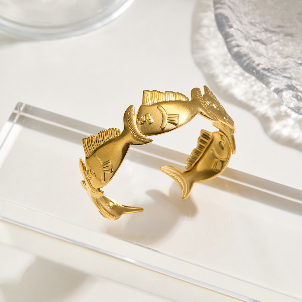 - 316L Stainless Steel Cuff Bangle, Round, plated