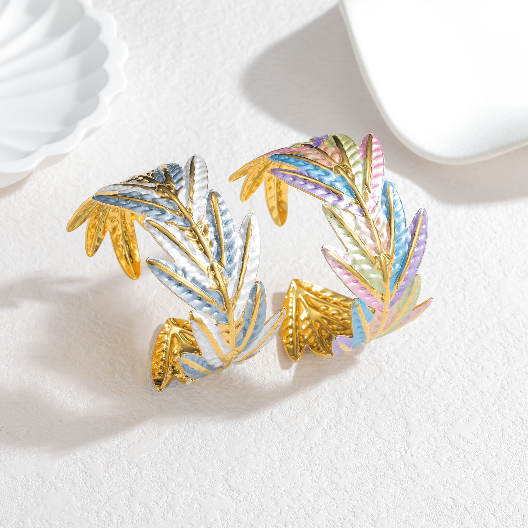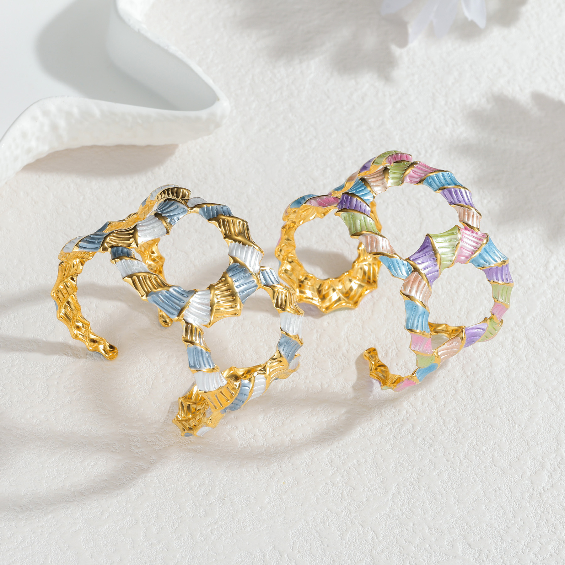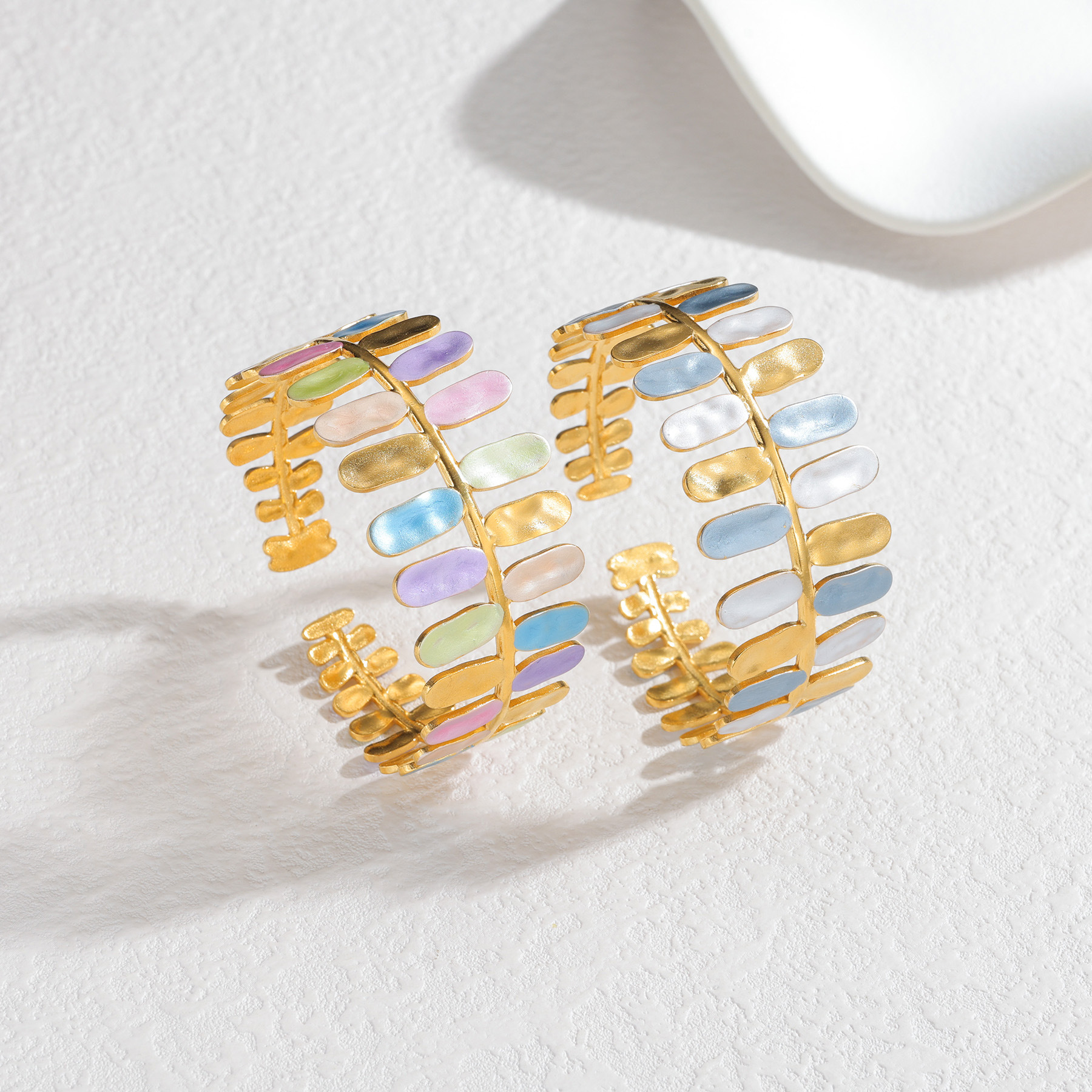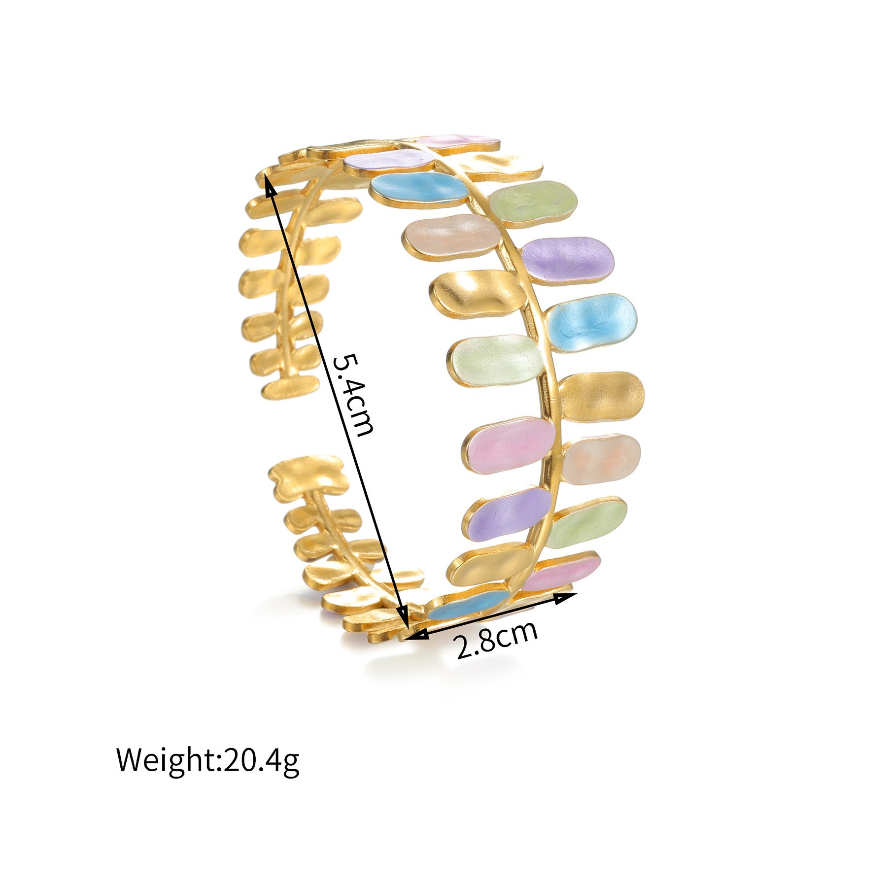 - 304 Stainless Steel Cuff Bangle, with White Shell, plated