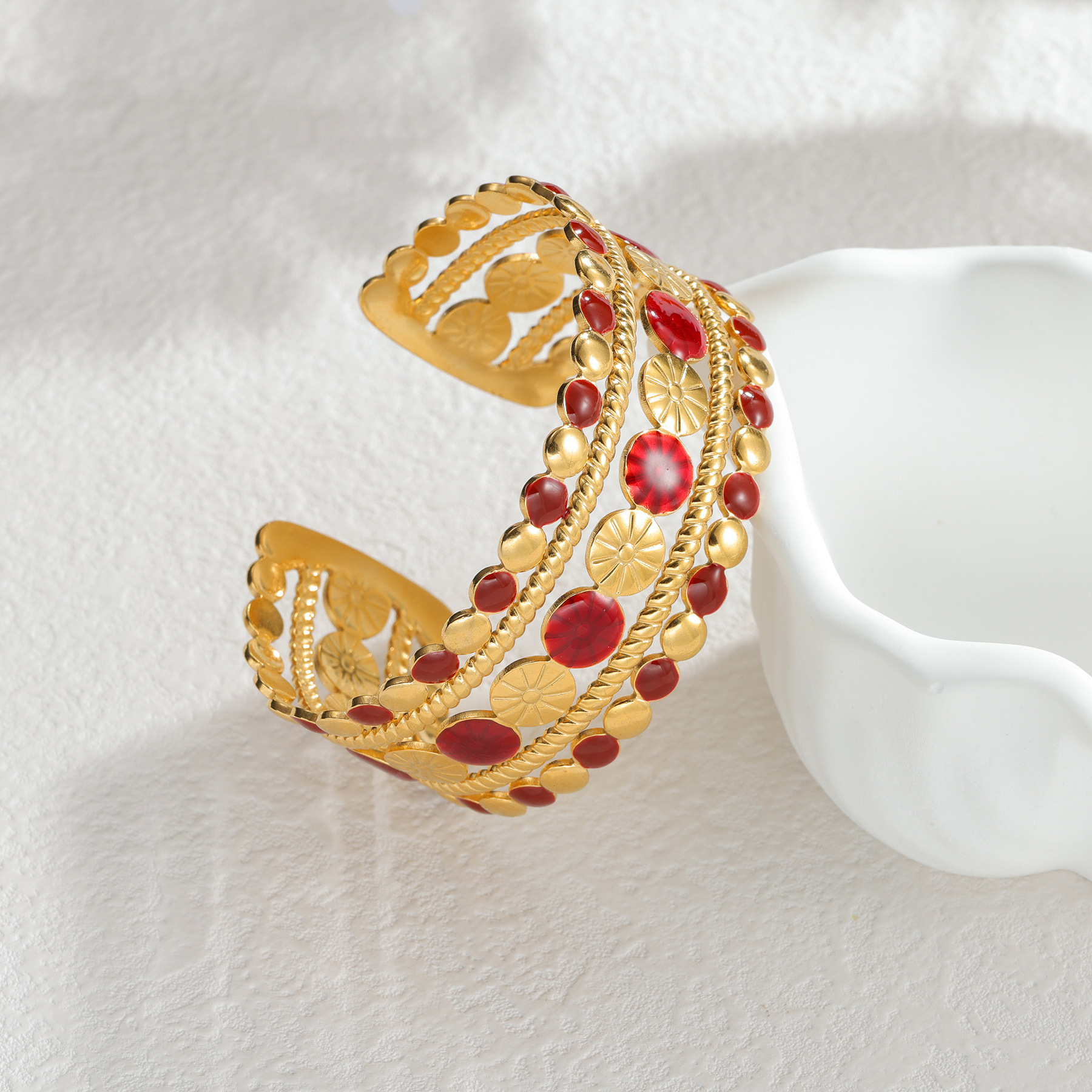 - Stainless Steel Bangle, with letter pattern & for woman & with rhinestone, original color