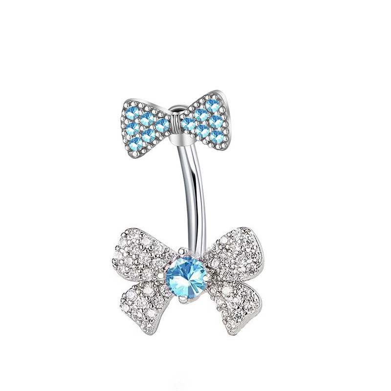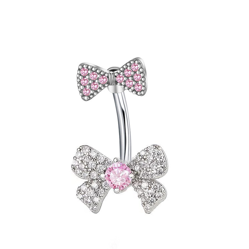 304 Stainless Steel Belly Ring, Bowknot, Unisex & micro pave cubic zirconia, more colors for choice, belly ring rod size 1.6x10mm, Sold By PC