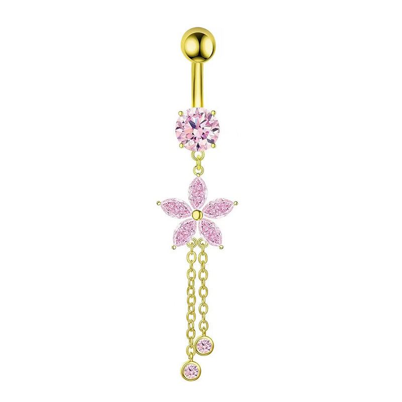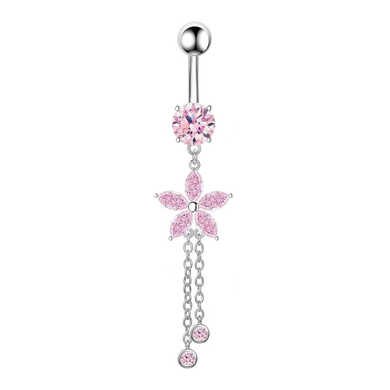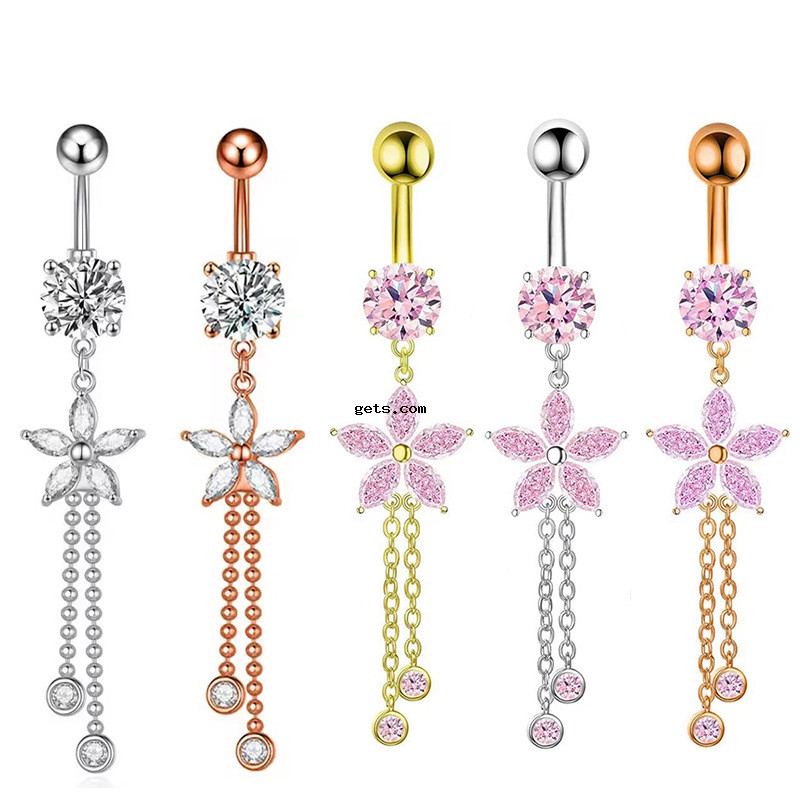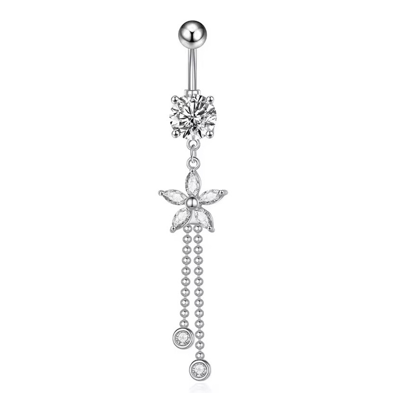 304 Stainless Steel Belly Ring, Tassel, plated, Unisex & micro pave cubic zirconia, more colors for choice, belly ring rod size 1.6x10mm, Sold By PC