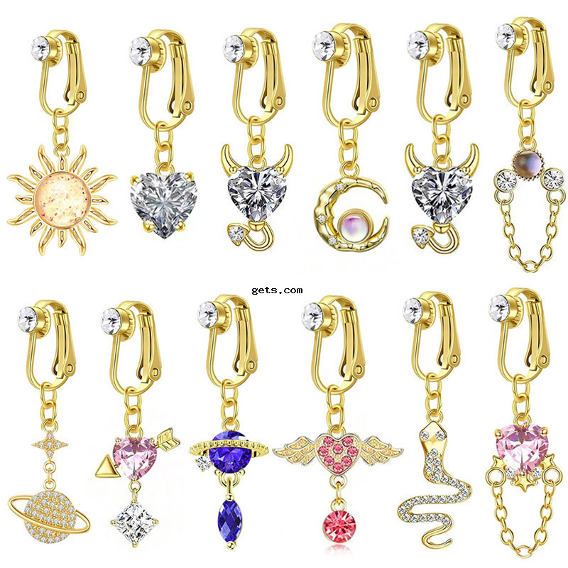 304 Stainless Steel Belly Ring, gold color plated, Unisex & different styles for choice & micro pave cubic zirconia, belly ring length 30-50mm, Sold By PC