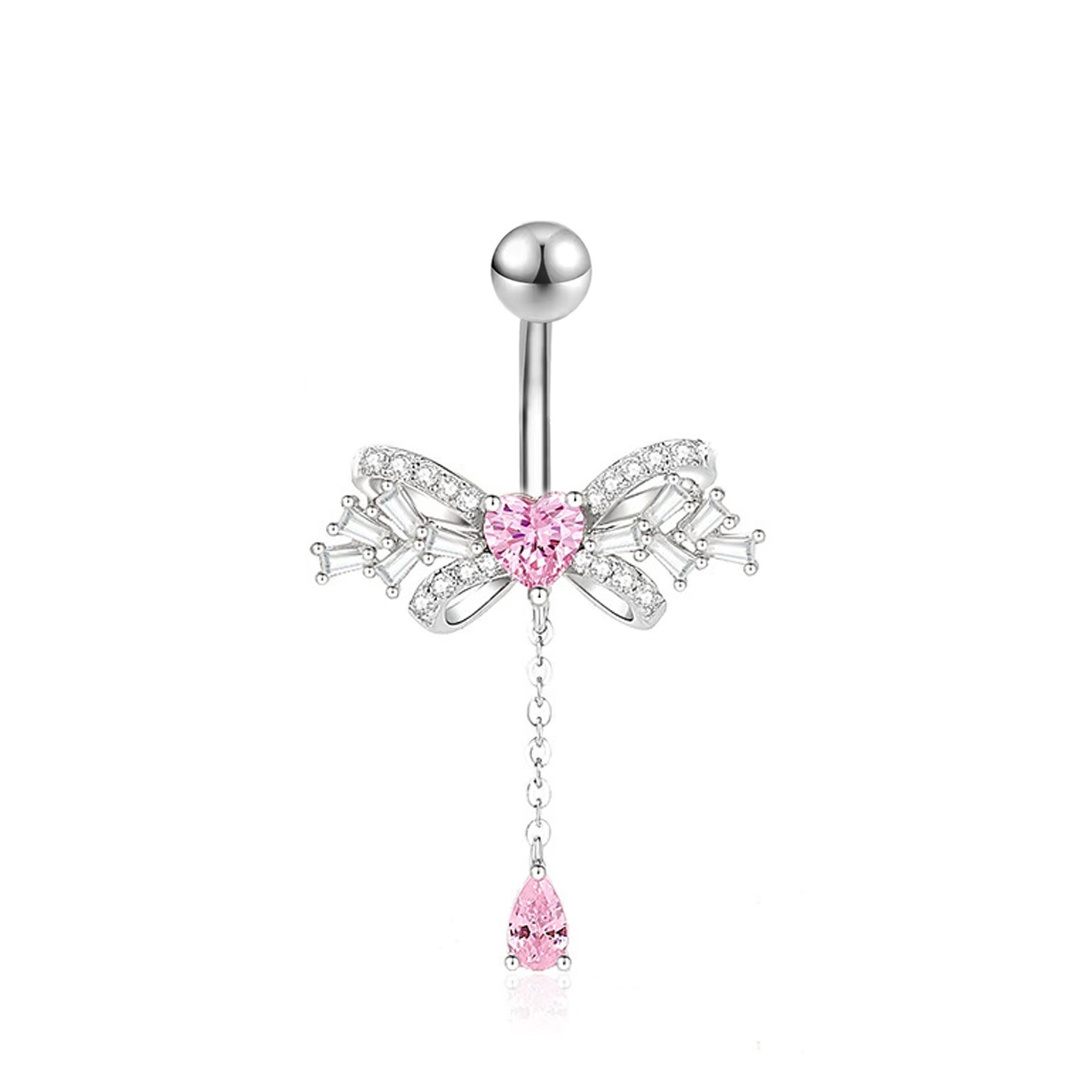 304 Stainless Steel Belly Ring, Unisex & different styles for choice & micro pave cubic zirconia, belly ring rod size 1.6x10mm, Sold By PC