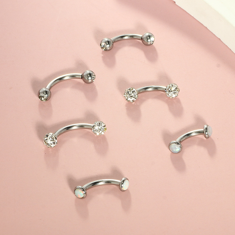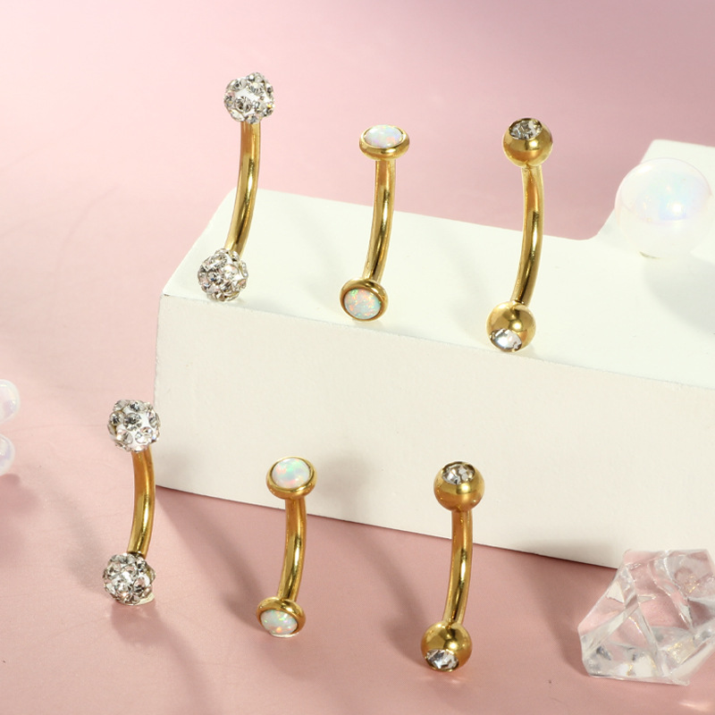 Stainless Steel Belly Ring, 304 Stainless Steel, with Opal, plated, fashion jewelry & micro pave cubic zirconia, more colors for choice, Sold By Set
