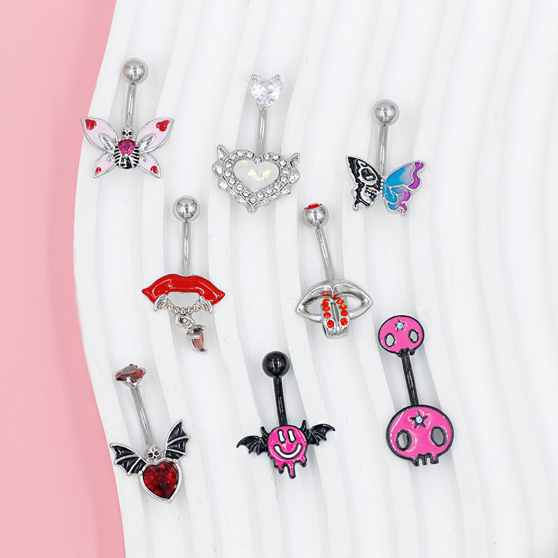 Tibetan Style Belly Ring, with 304 Stainless Steel, plated, Unisex & different styles for choice & enamel & with rhinestone, Sold By PC