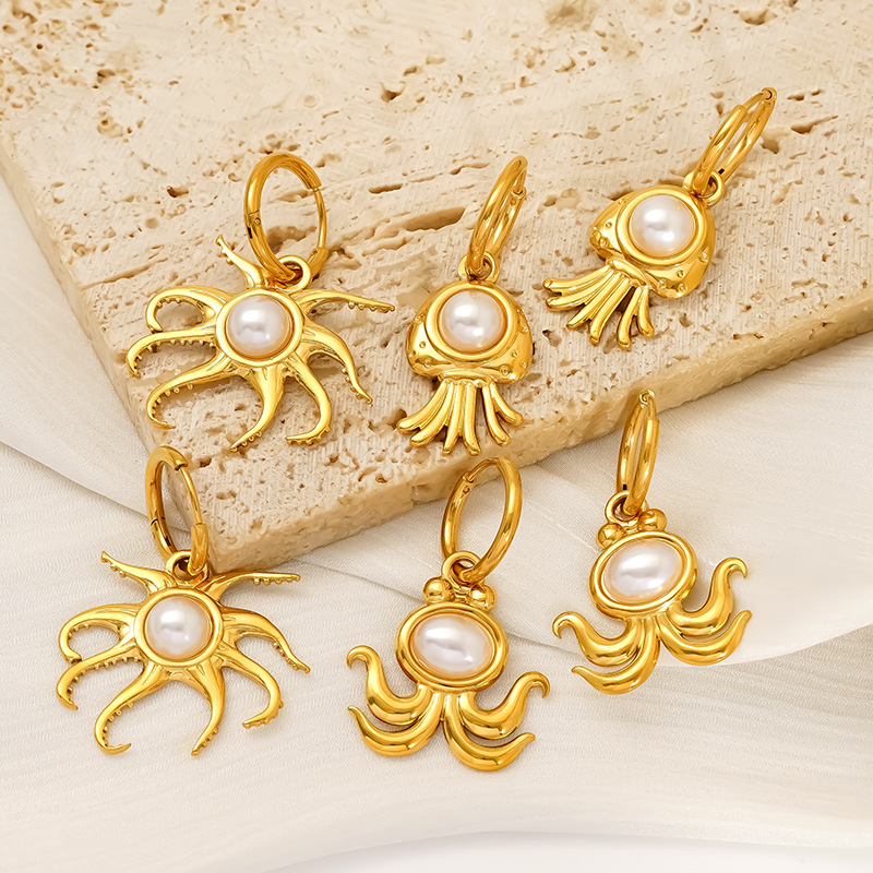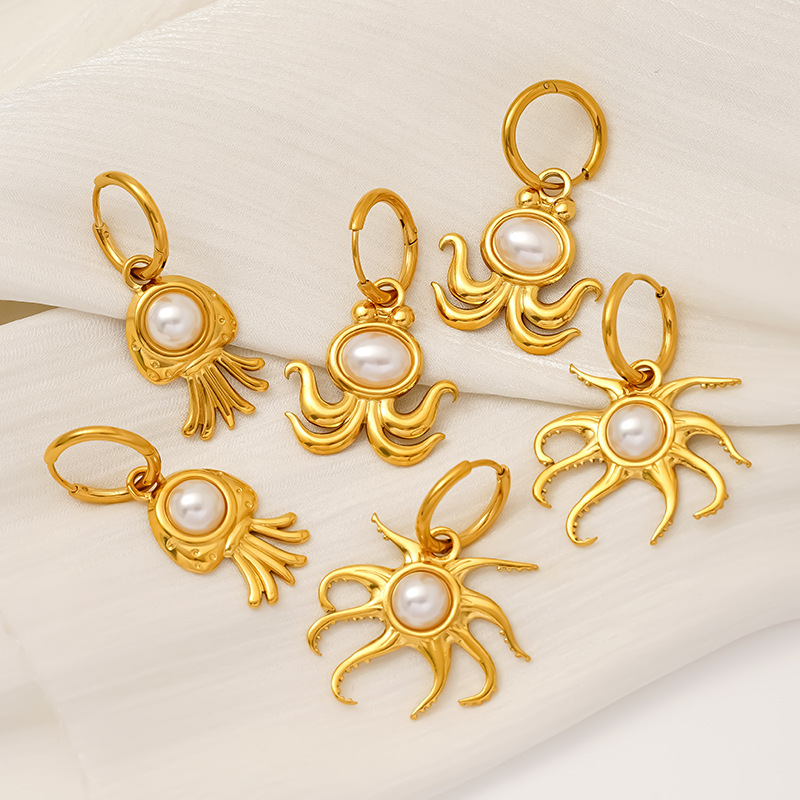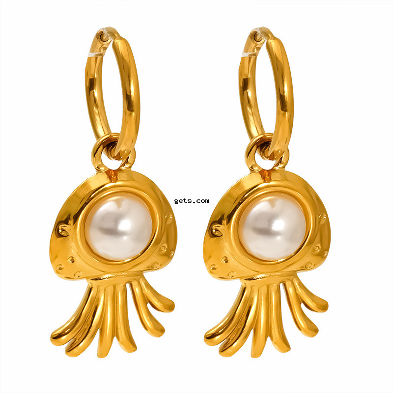 - Stainless Steel Drop Earring, 304 Stainless Steel, with Pearl Oyster
