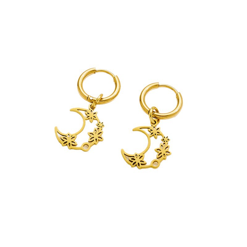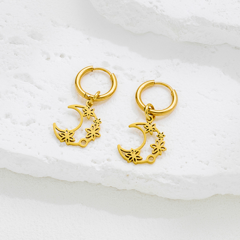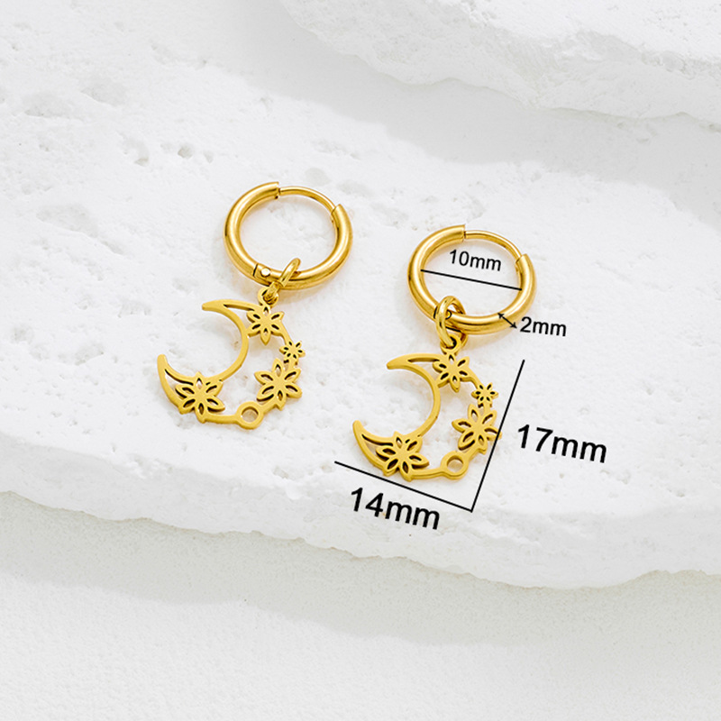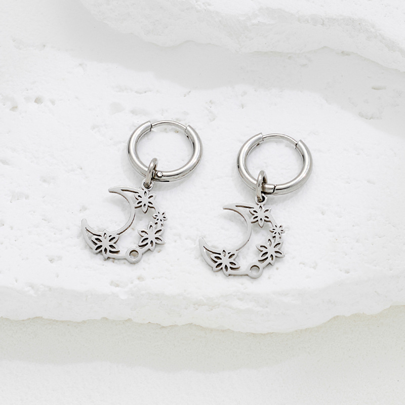 - Stainless Steel Drop Earring, 304 Stainless Steel, Star