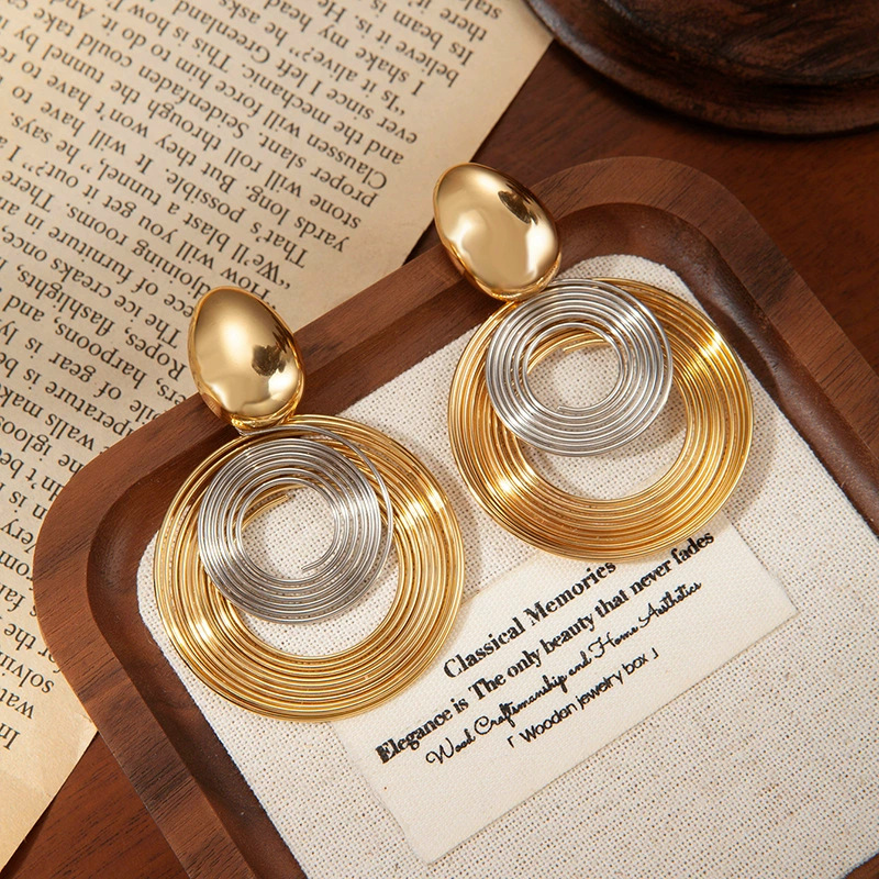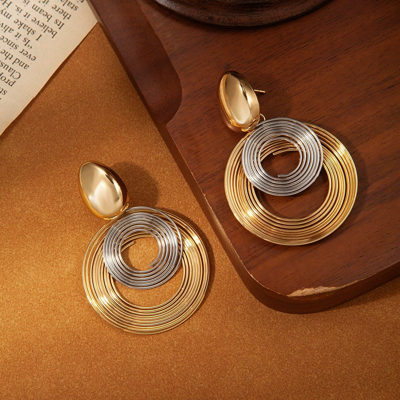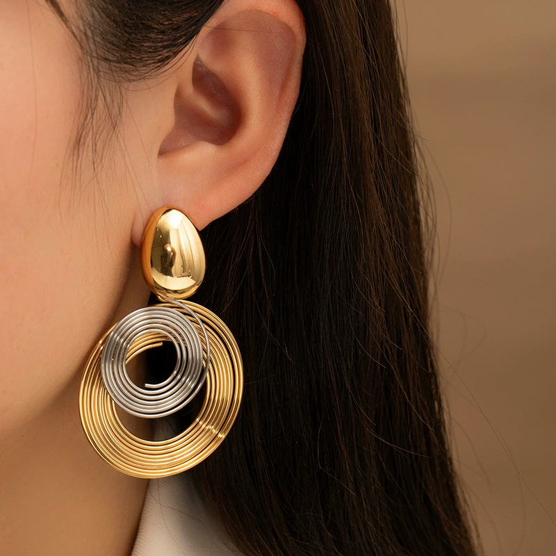 Stainless Steel Drop Earring, 304 Stainless Steel, plated, for woman & two tone & hollow, Sold By Pair
