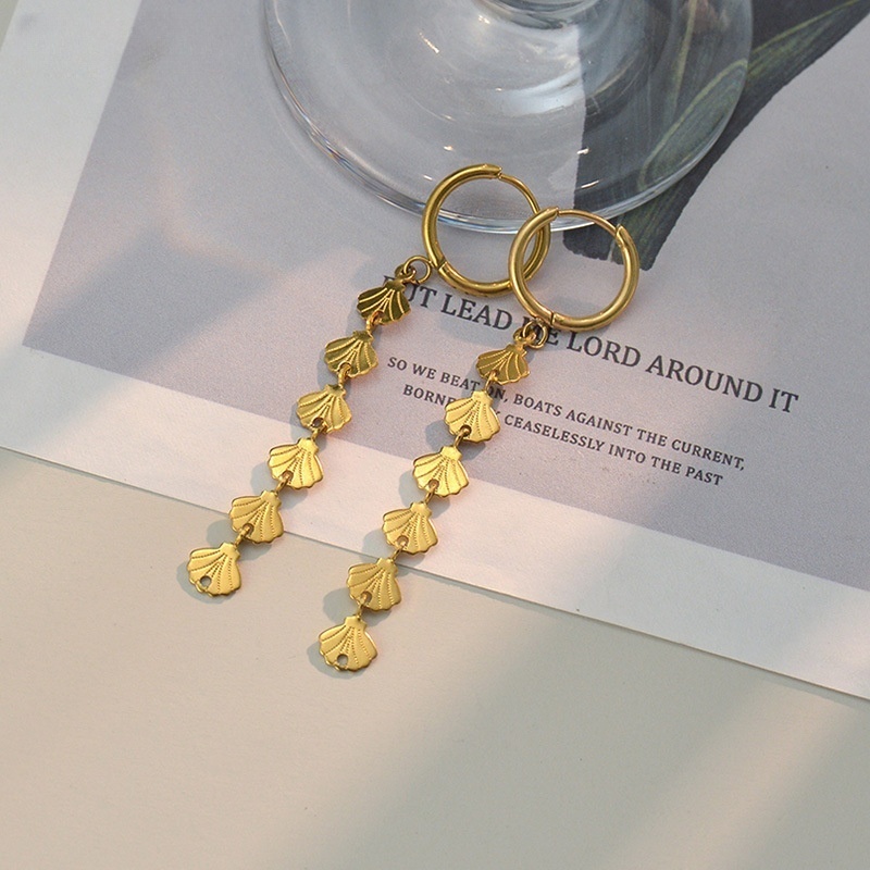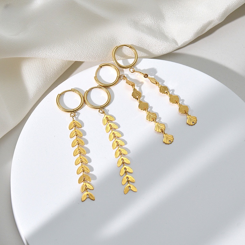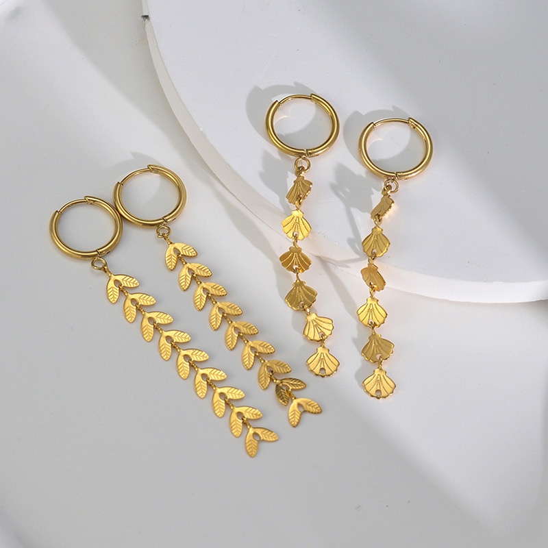 - Stainless Steel Drop Earring, 304 Stainless Steel, Leaf