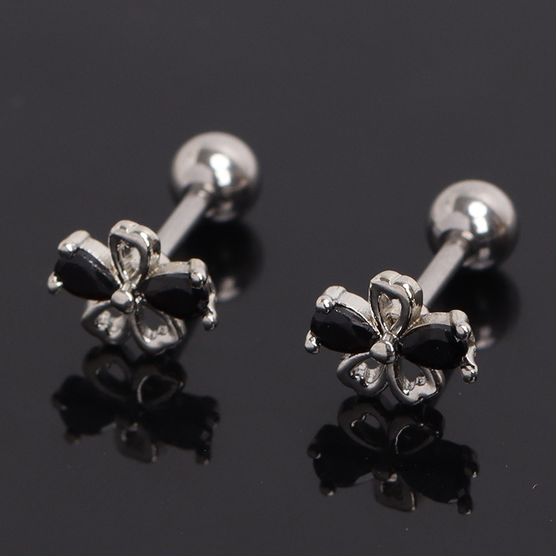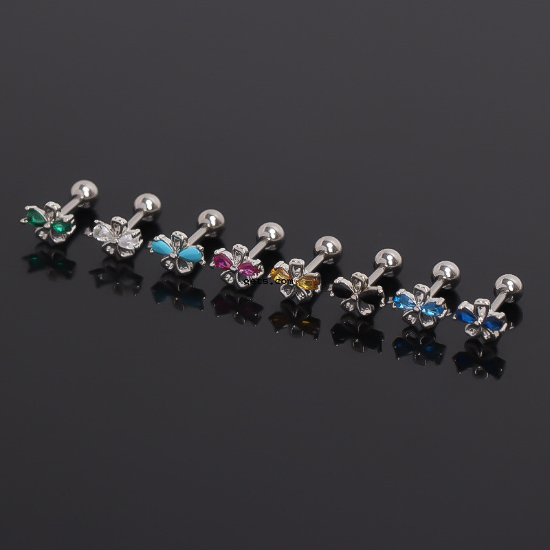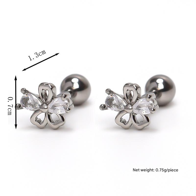 Stainless Steel Ear Piercing Jewelry, 304 Stainless Steel, with Brass, Flower, plated, fashion jewelry & micro pave cubic zirconia, more colors for choice, Sold By PC