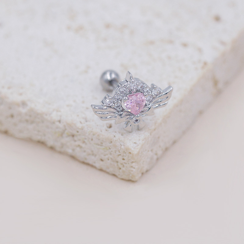 - Stainless Steel Piercing Earring, with Crystal, Square