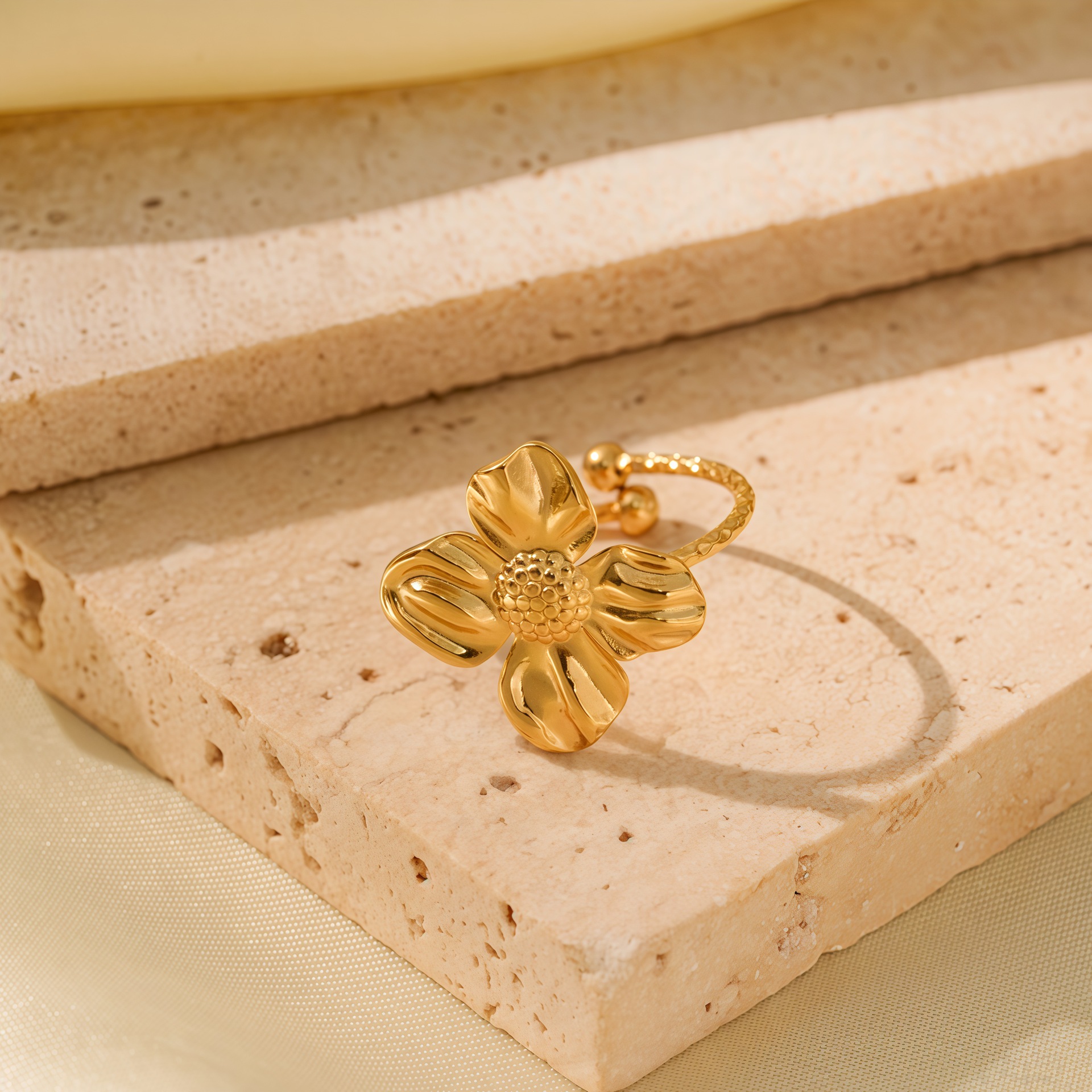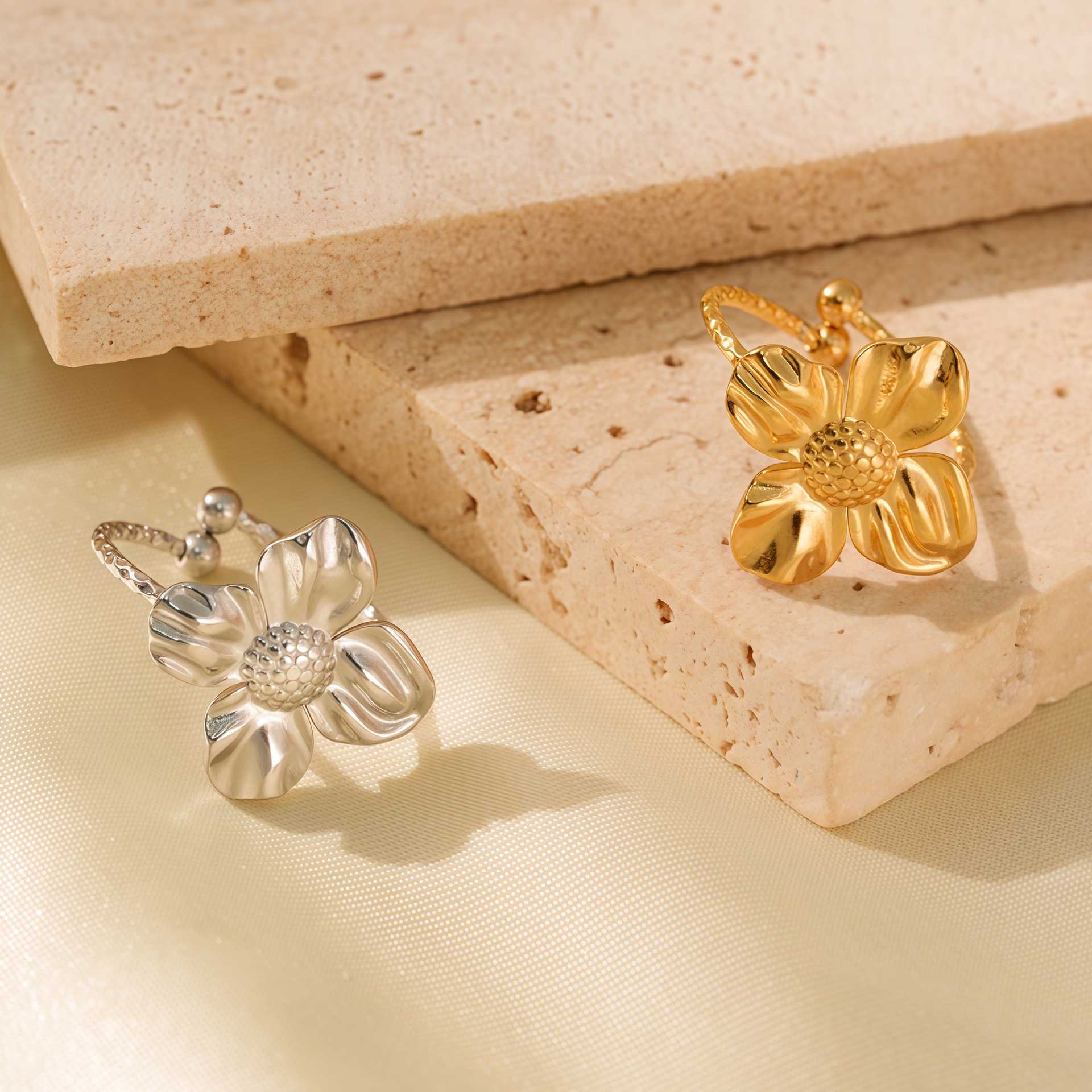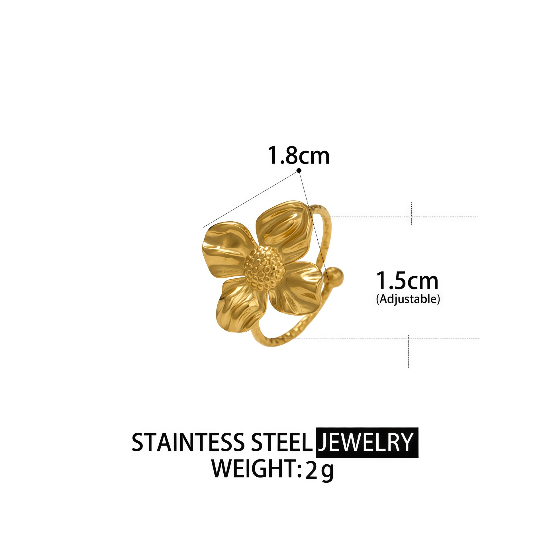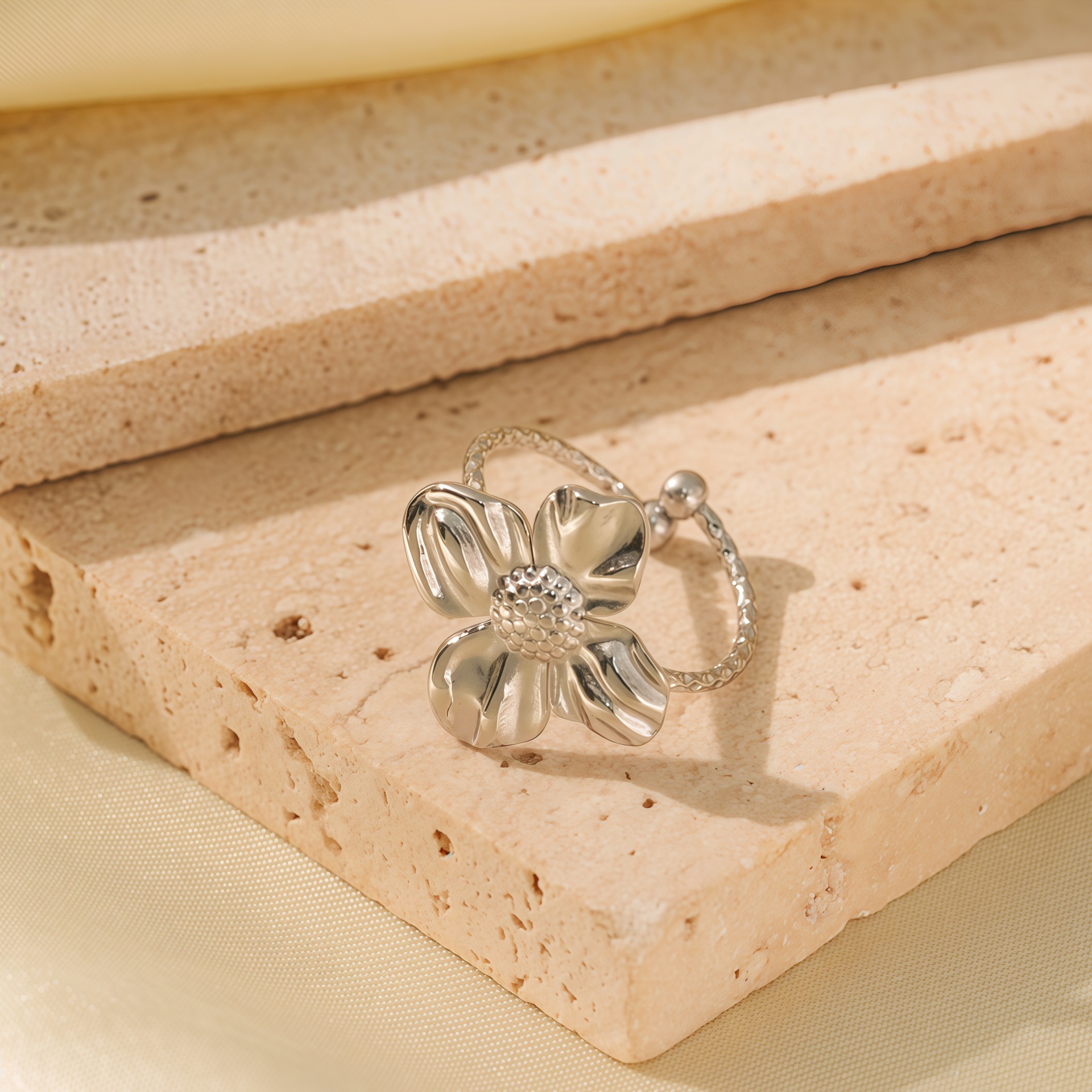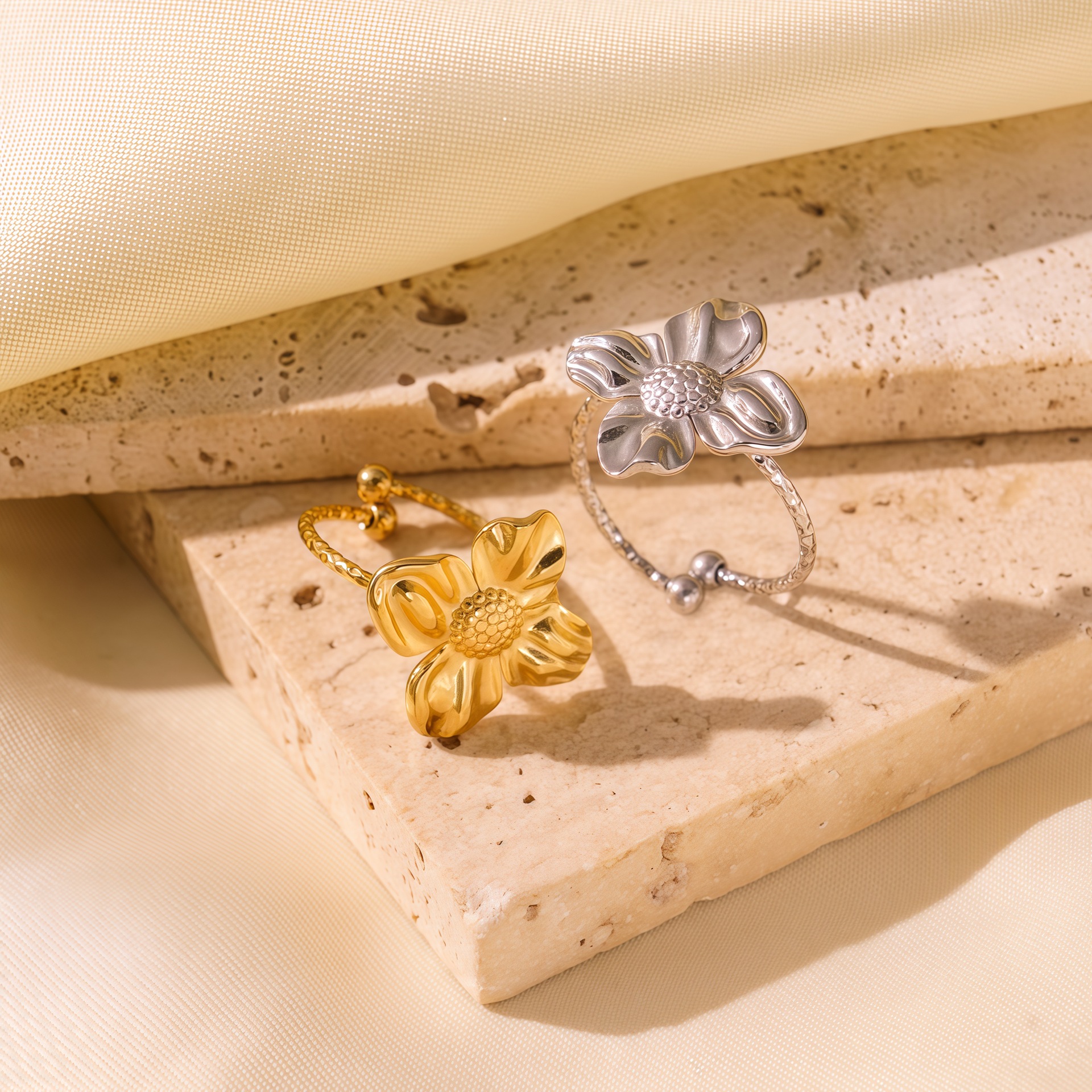 - Stainless Steel Finger Ring, 304 Stainless Steel, Flower