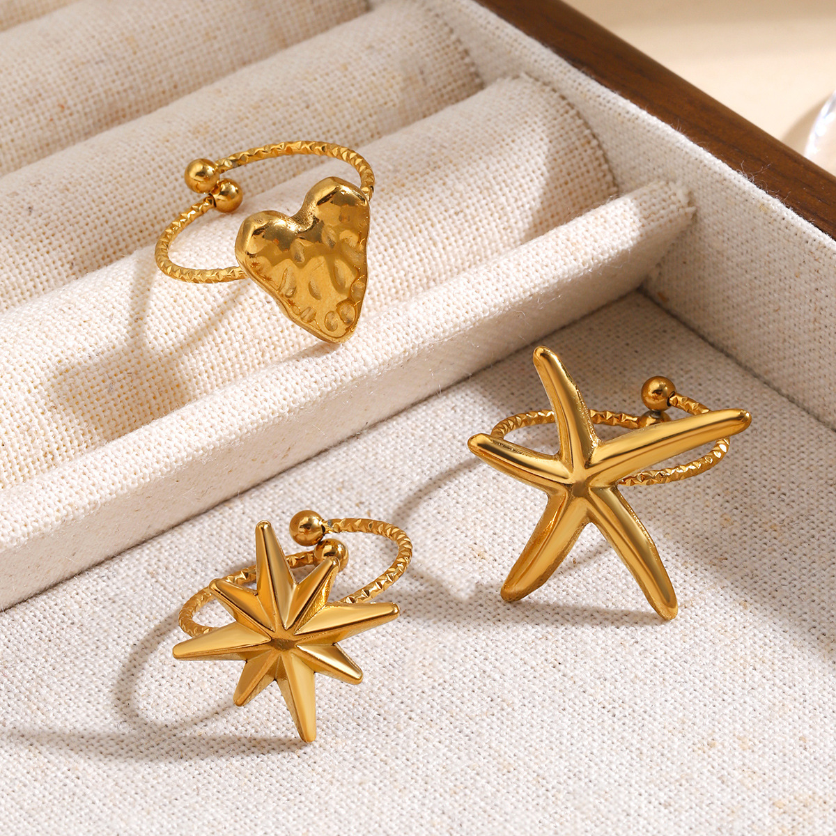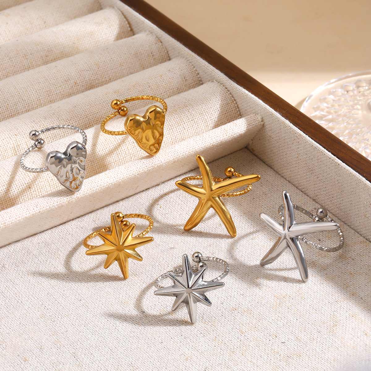 - 304 Stainless Steel Cuff Finger Ring, 18K gold plated, adjustable & different styles for choice & for woman & hollow