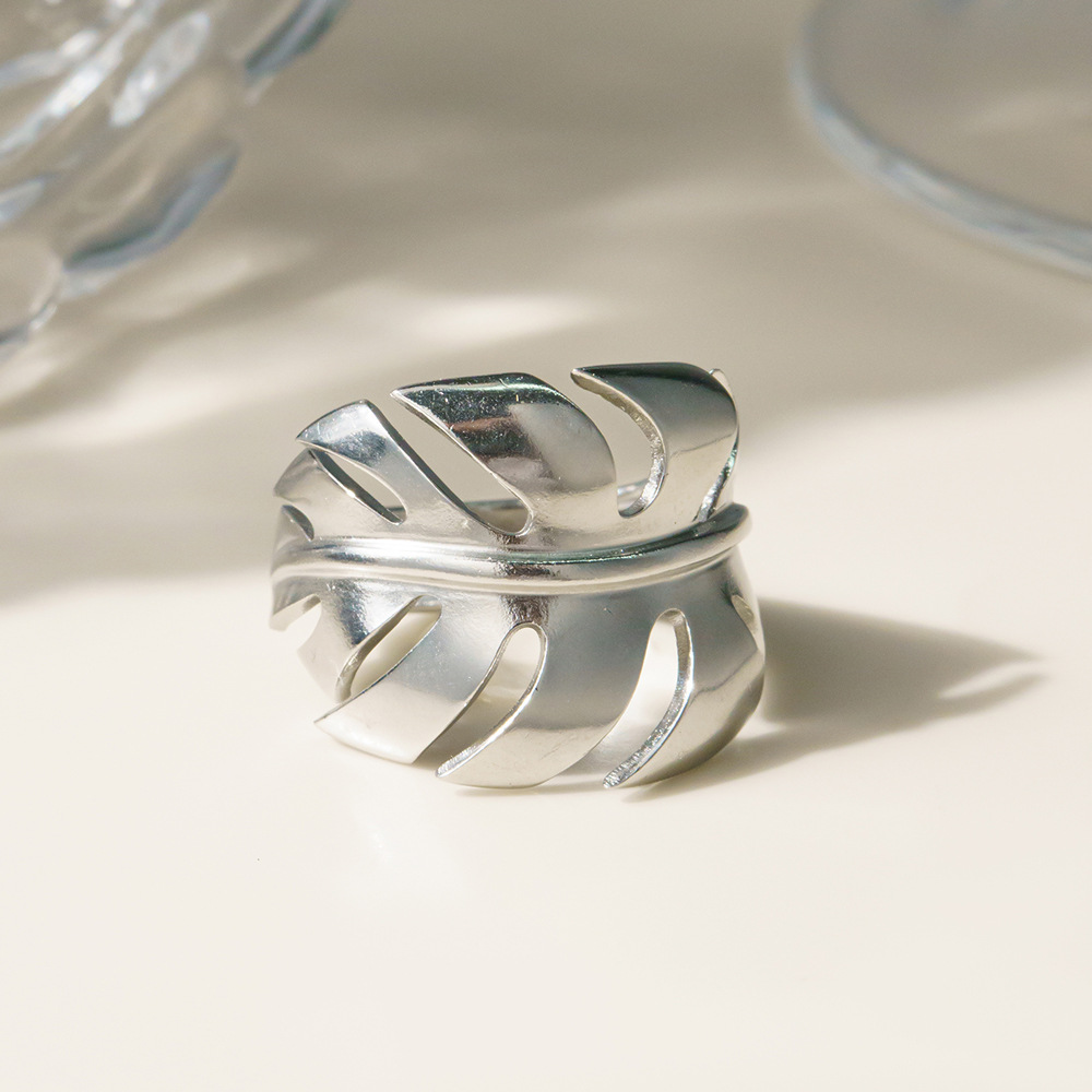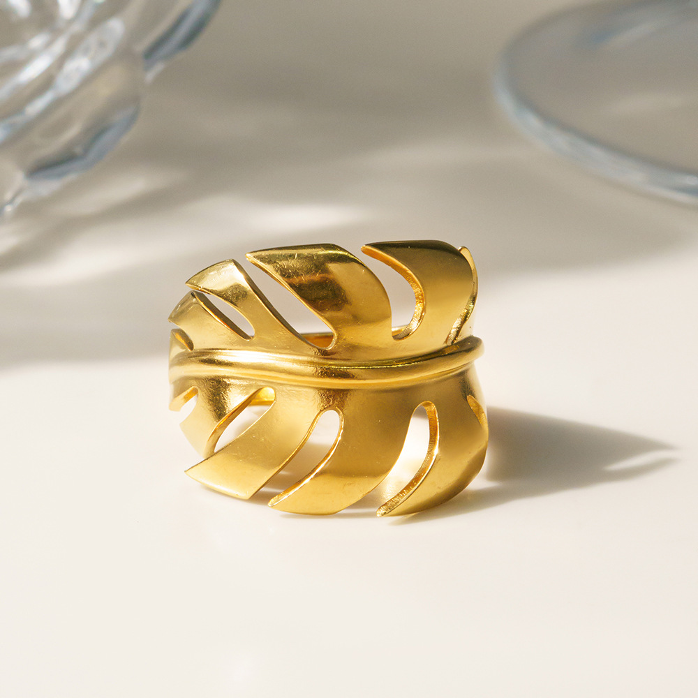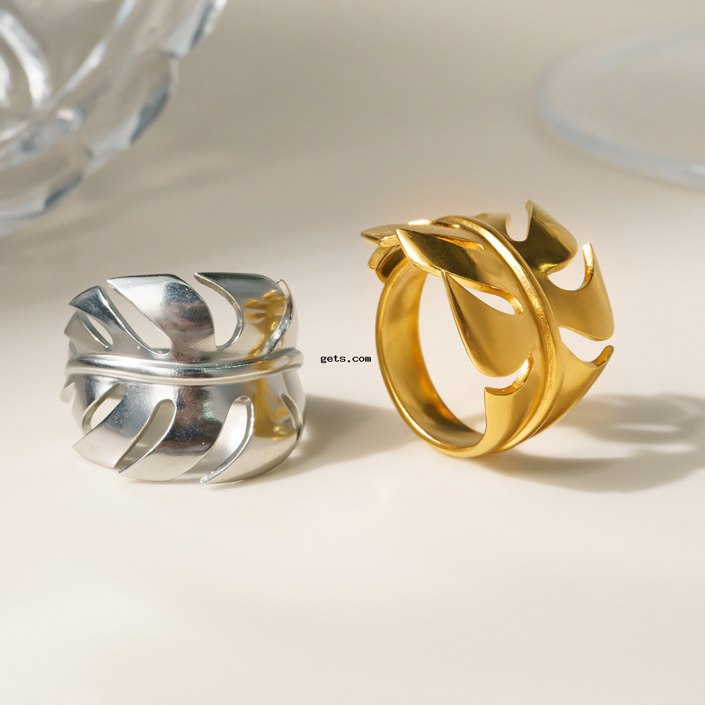 Stainless Steel Finger Ring, 304 Stainless Steel, Leaf, Vacuum Plating, fashion jewelry & for woman, Sold By PC