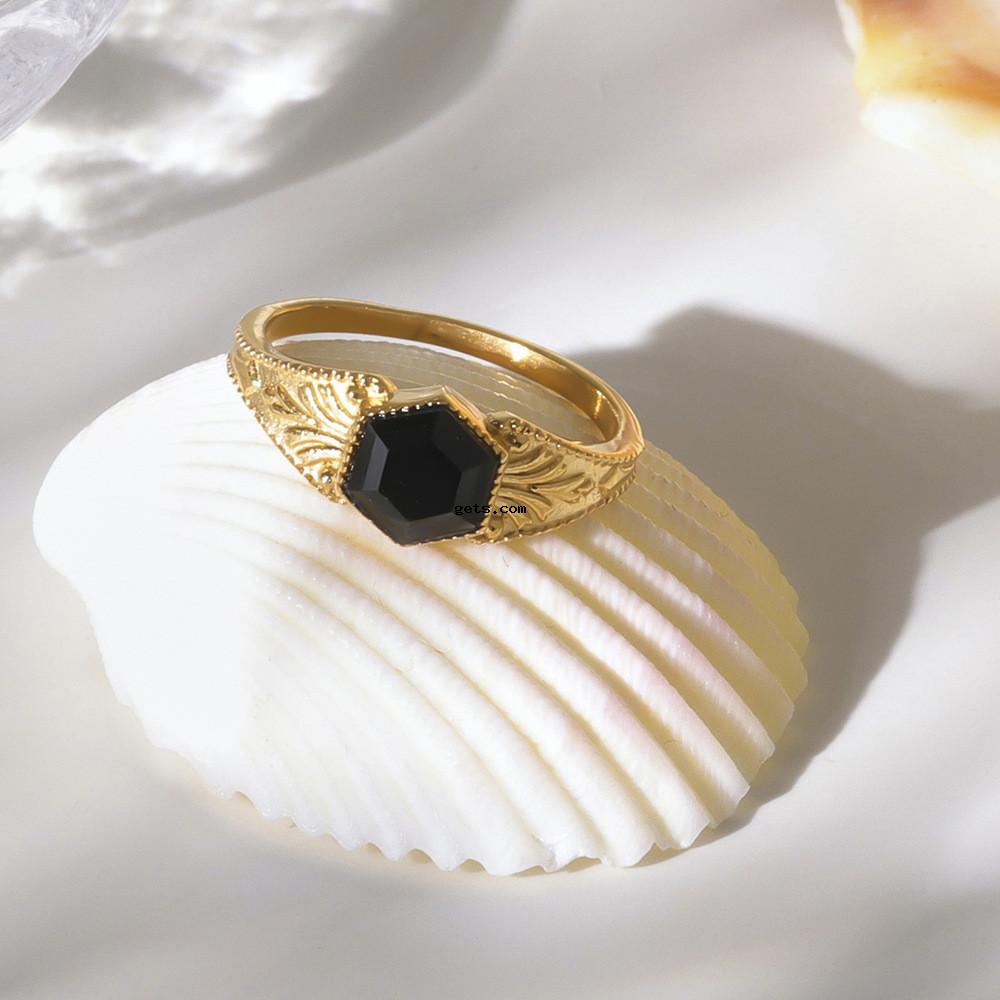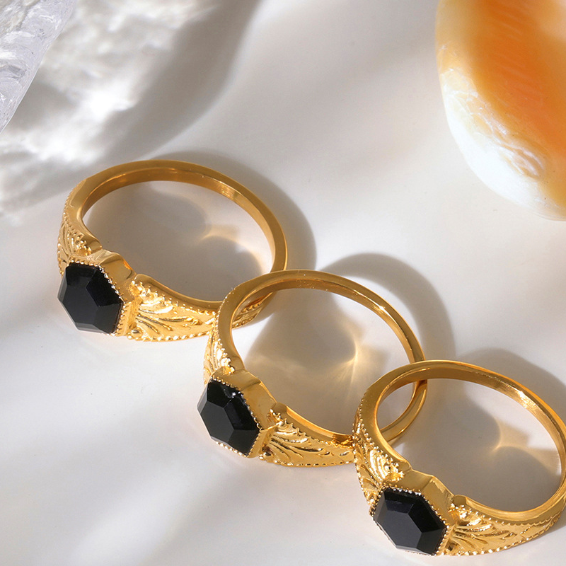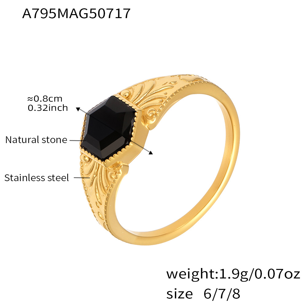 - Stainless Steel Finger Ring, 304 Stainless Steel, with Natural Stone