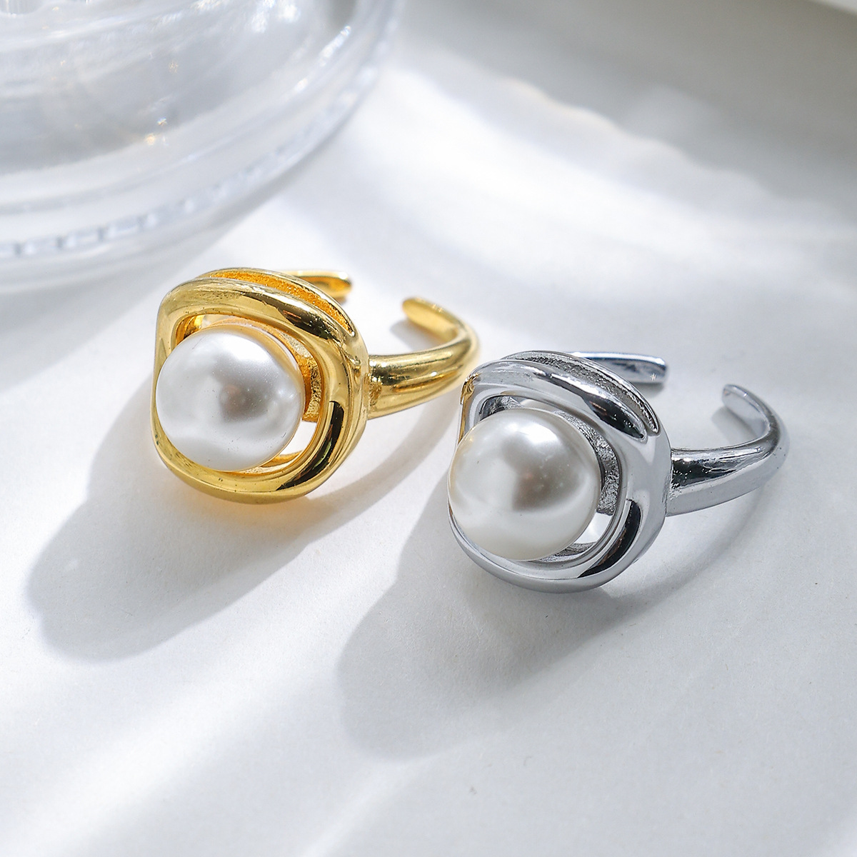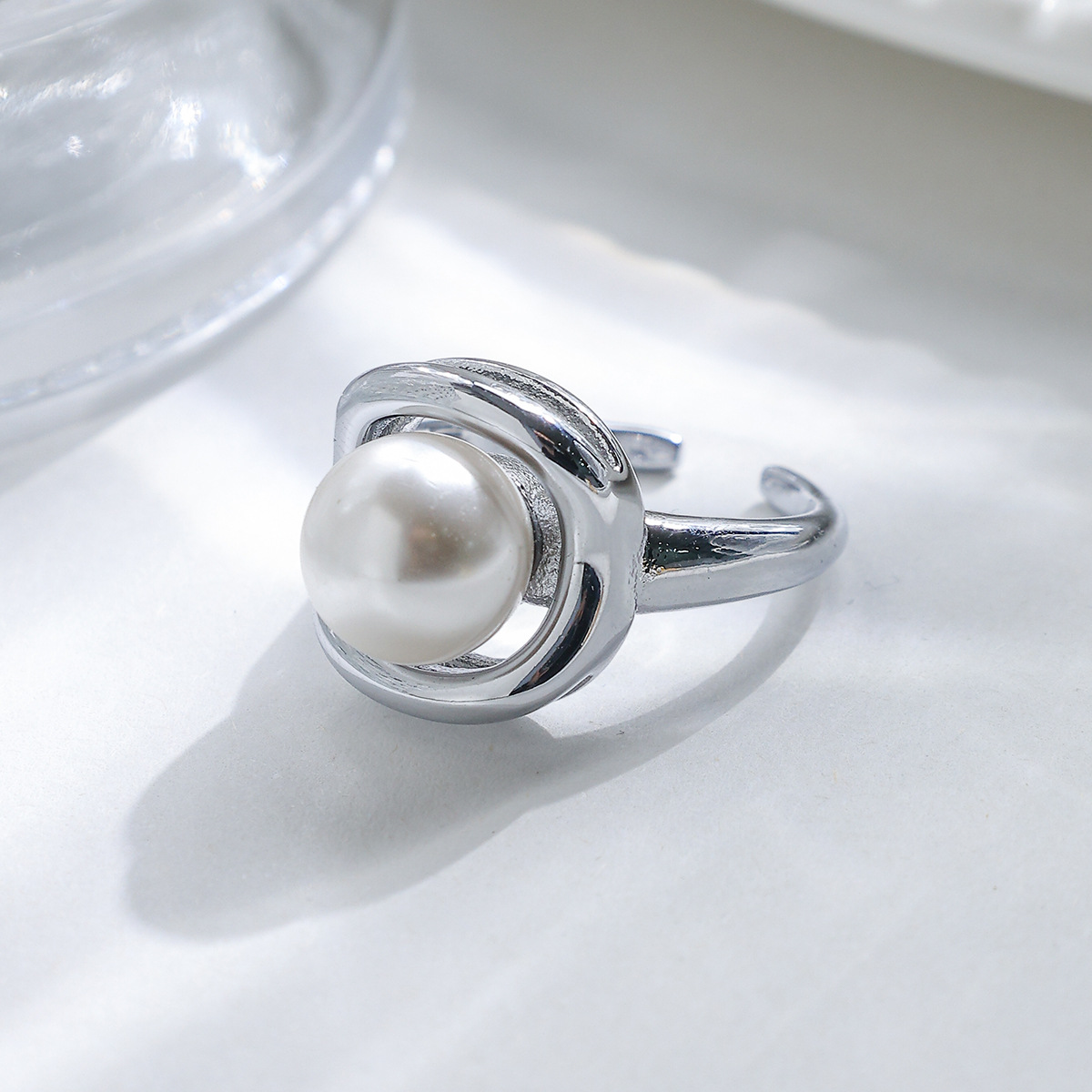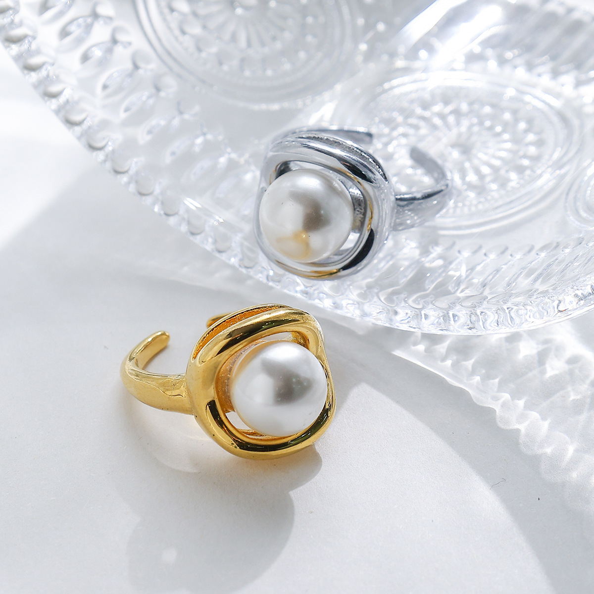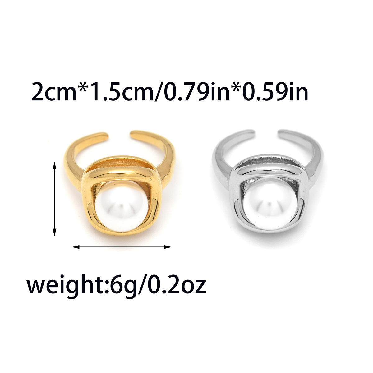 Stainless Steel Finger Ring, 304 Stainless Steel, with Plastic Pearl, plated, fashion jewelry & for woman, more colors for choice, Sold By PC