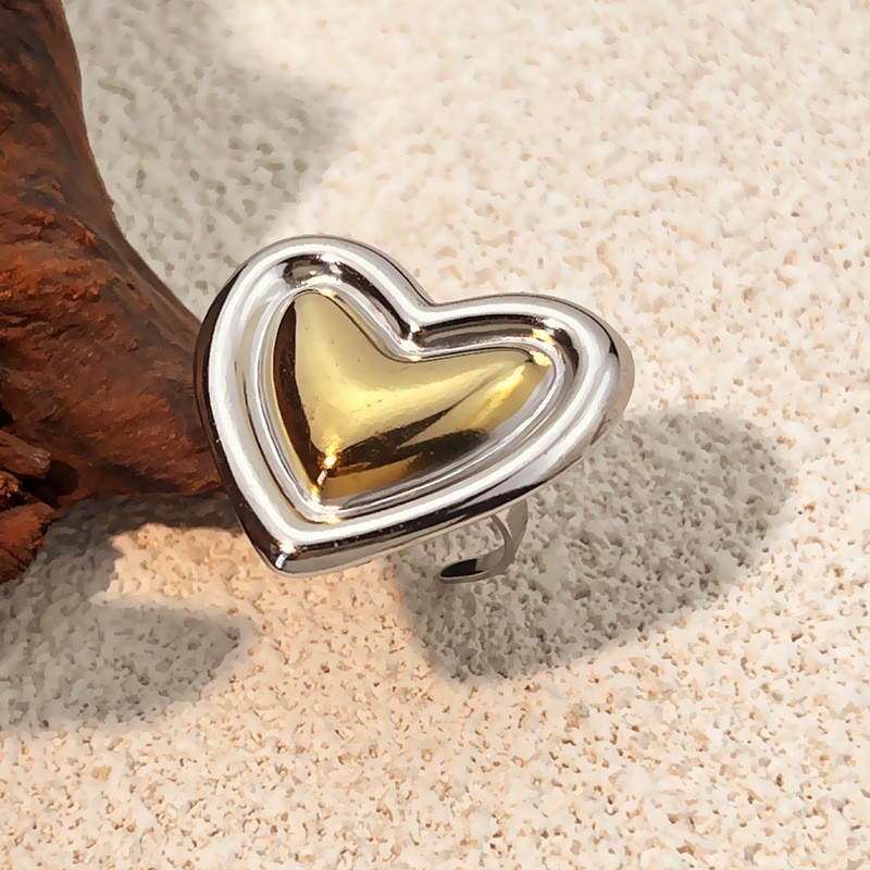 - Stainless Steel Finger Ring, 304 Stainless Steel, Heart