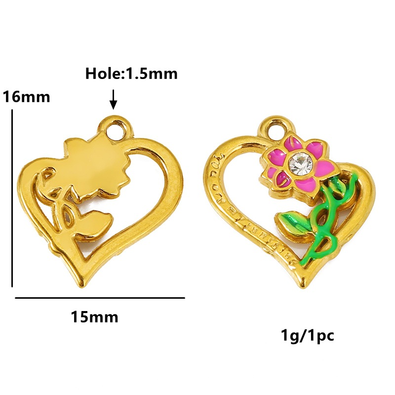 - Stainless Steel Flower Pendant, 304 Stainless Steel, Heart