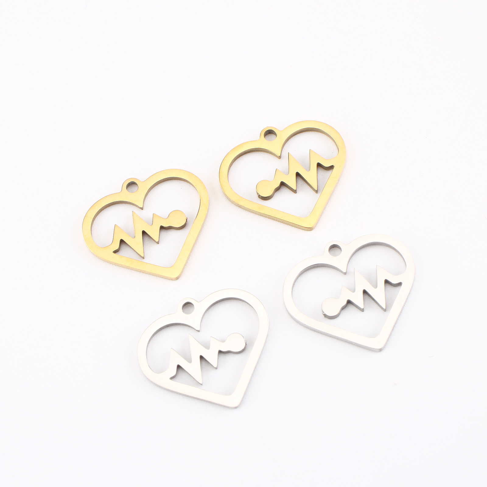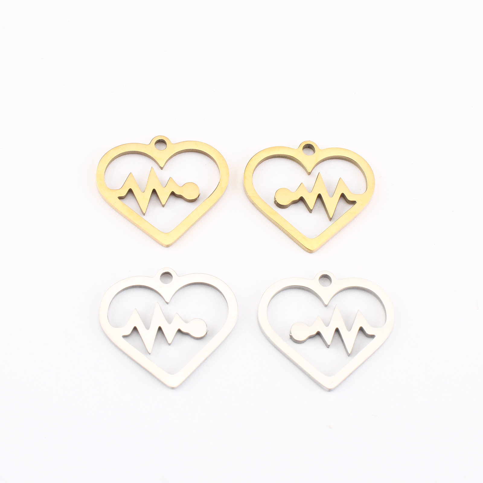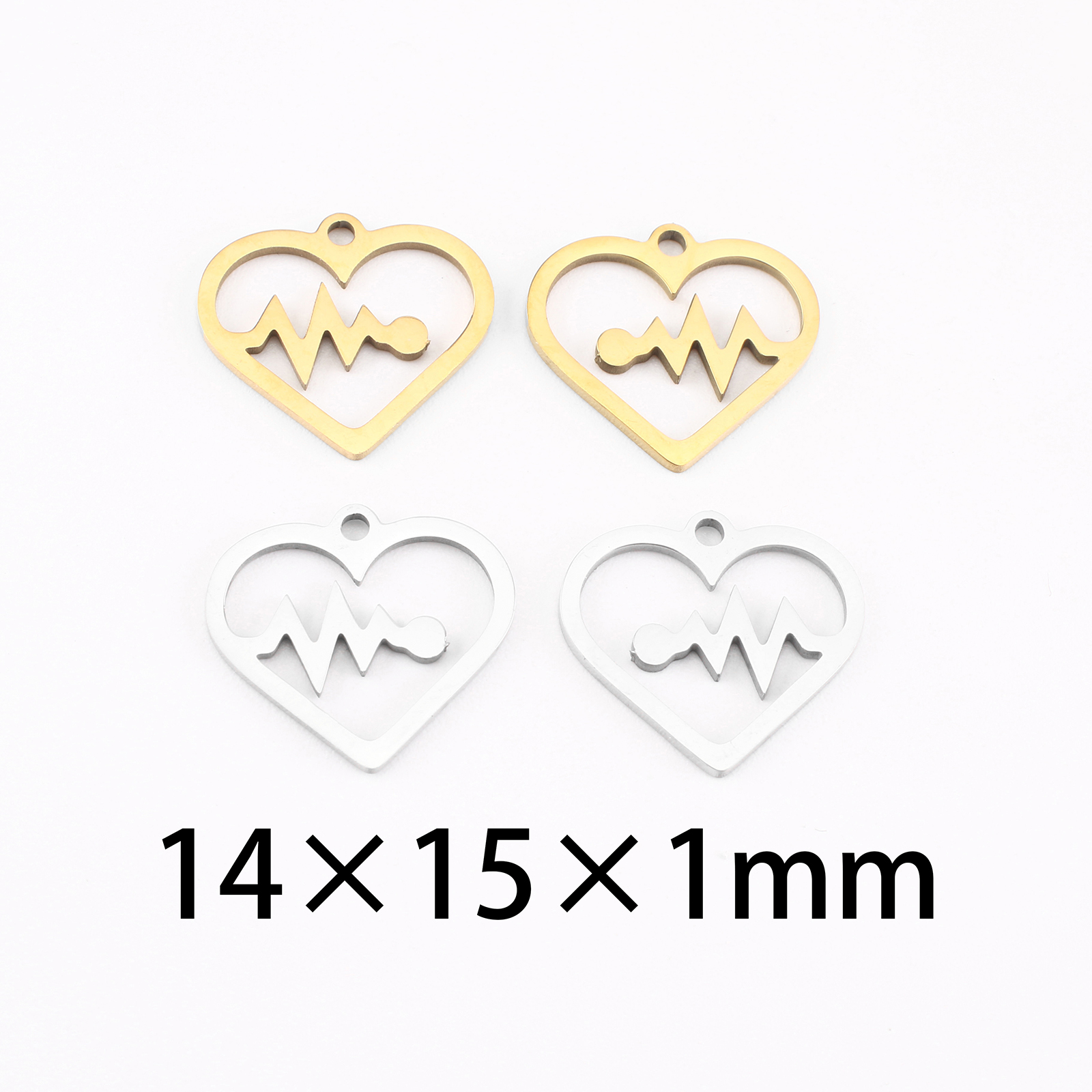 Stainless Steel Heart Pendants, 304 Stainless Steel, Electrocardiographic, plated, DIY & hollow, more colors for choice, 14x15x1mm, Sold By PC