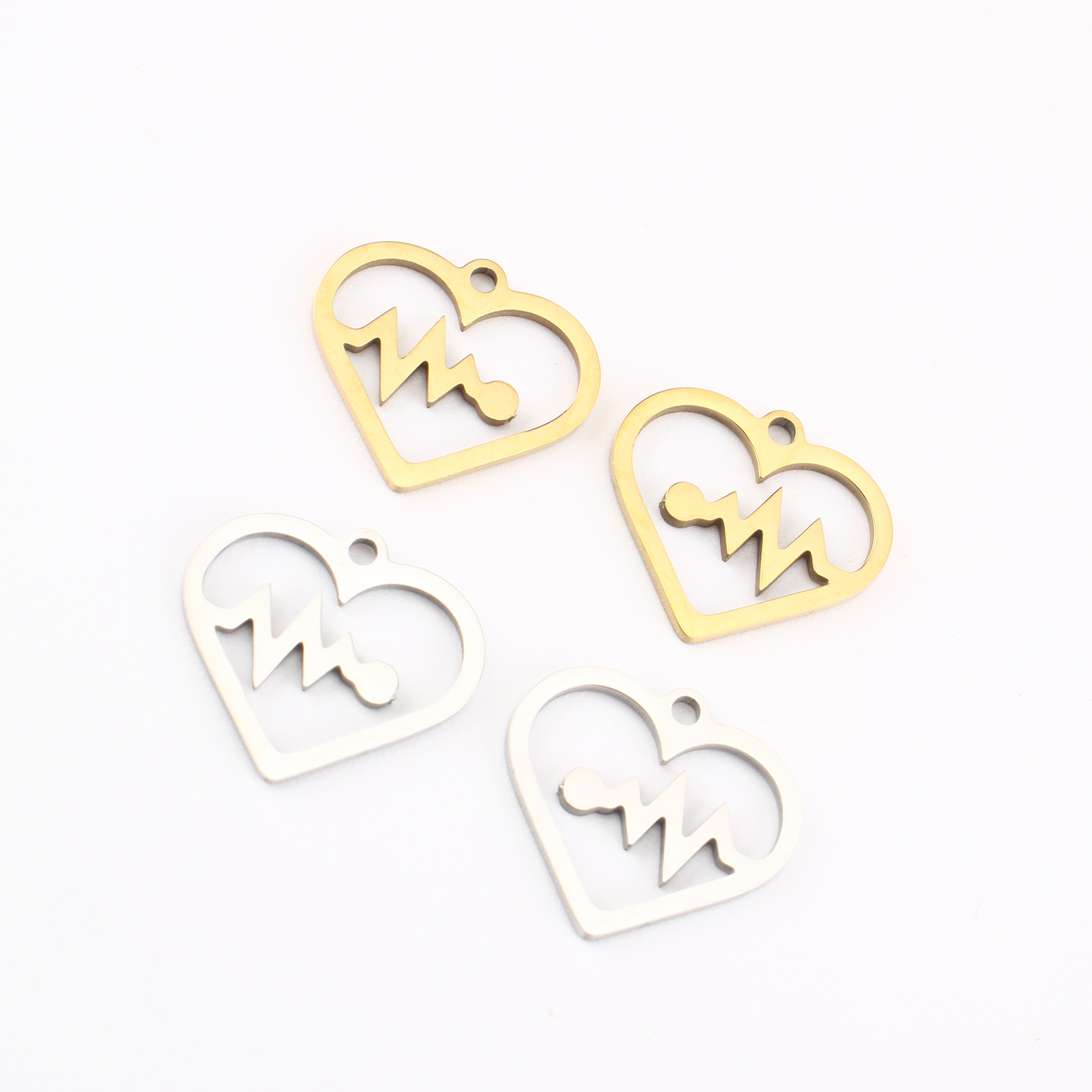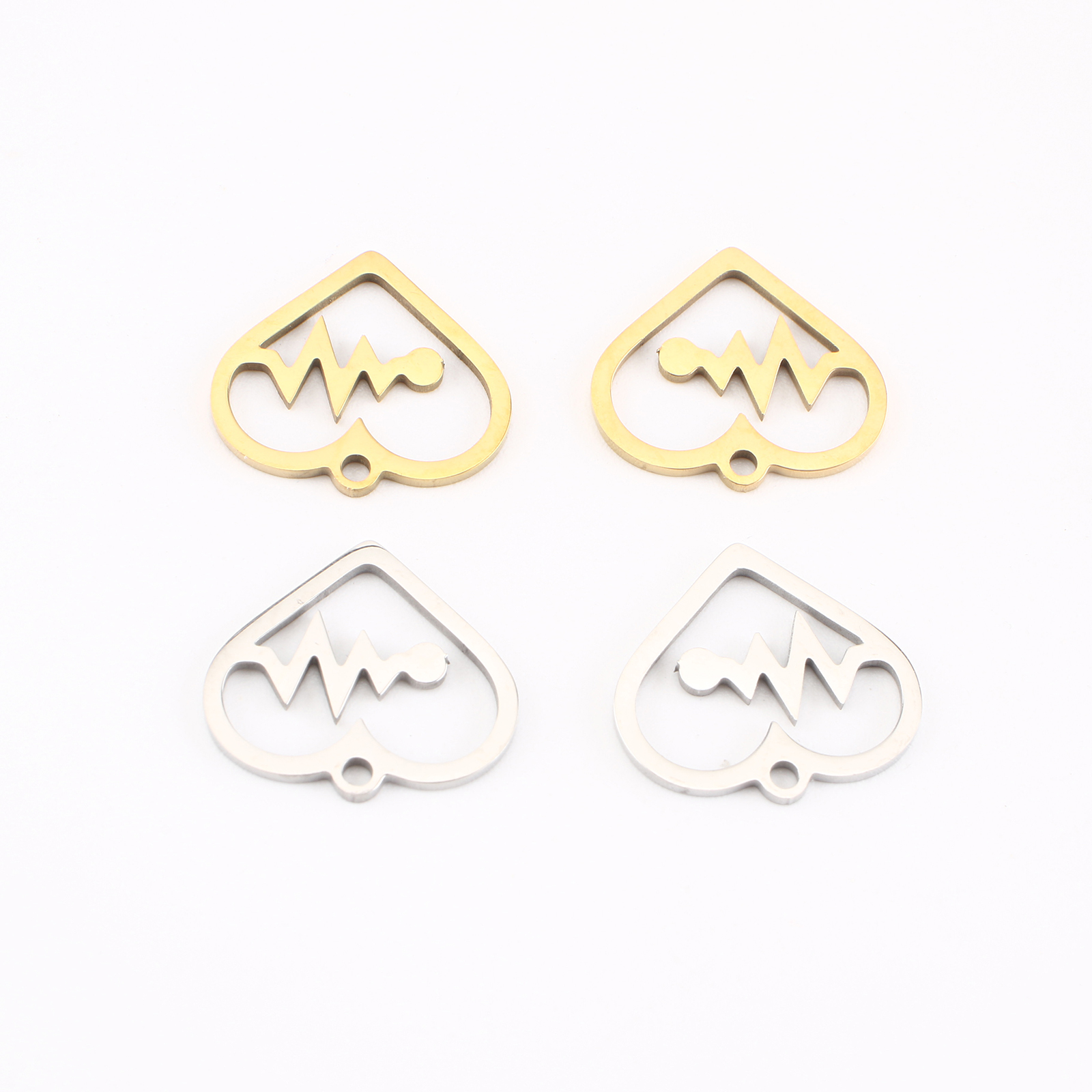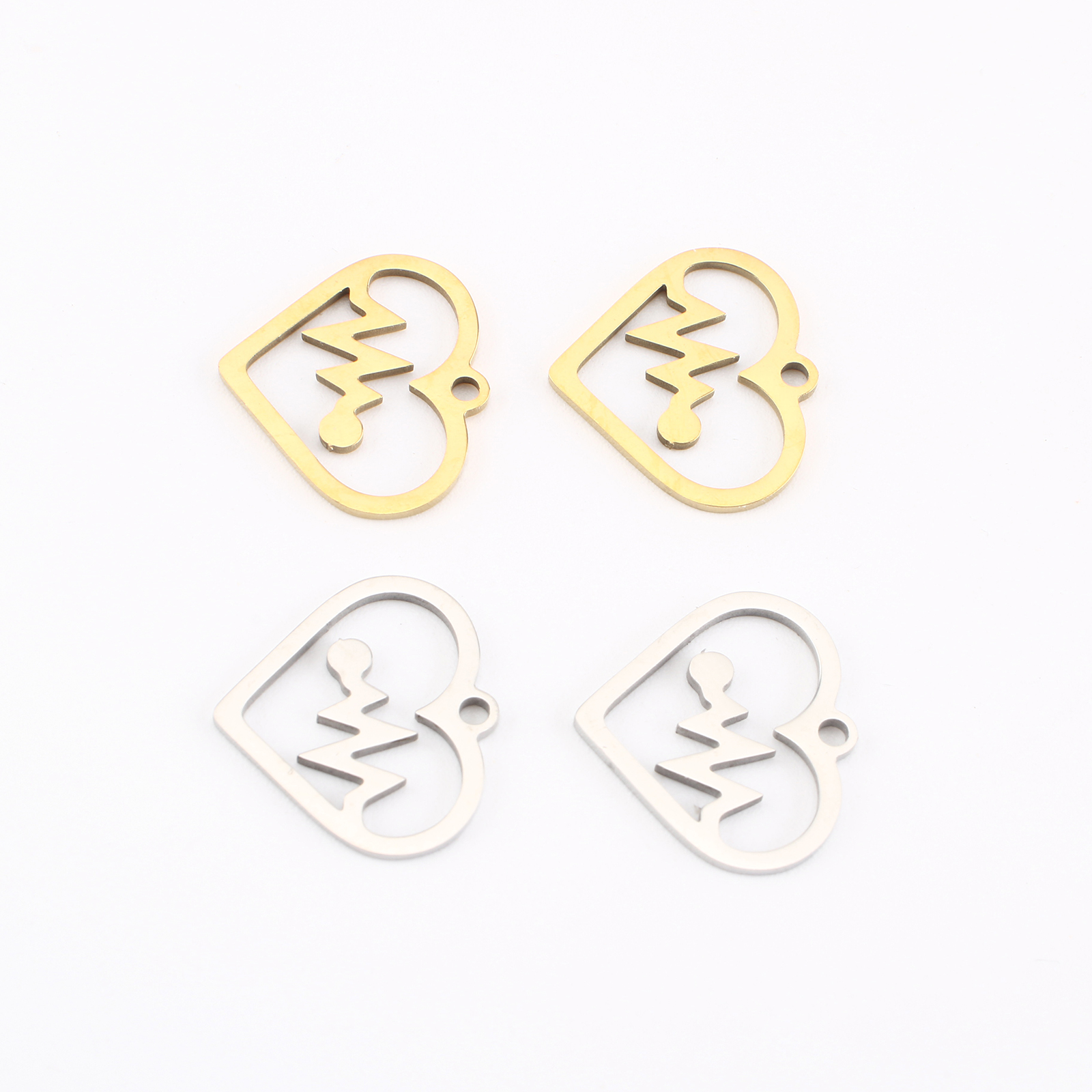Stainless Steel Heart Pendants, 304 Stainless Steel, Electrocardiographic, plated, DIY & hollow, more colors for choice, 14x15x1mm, Sold By PC