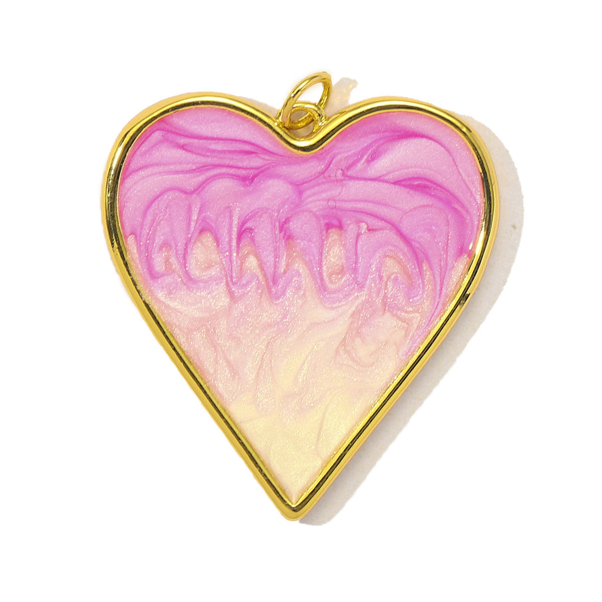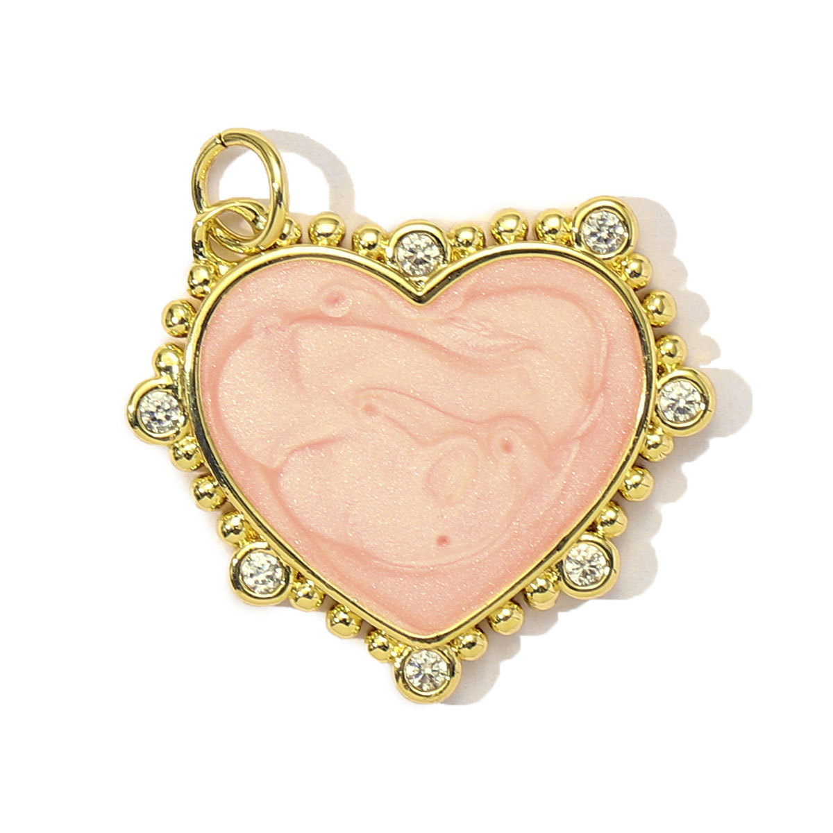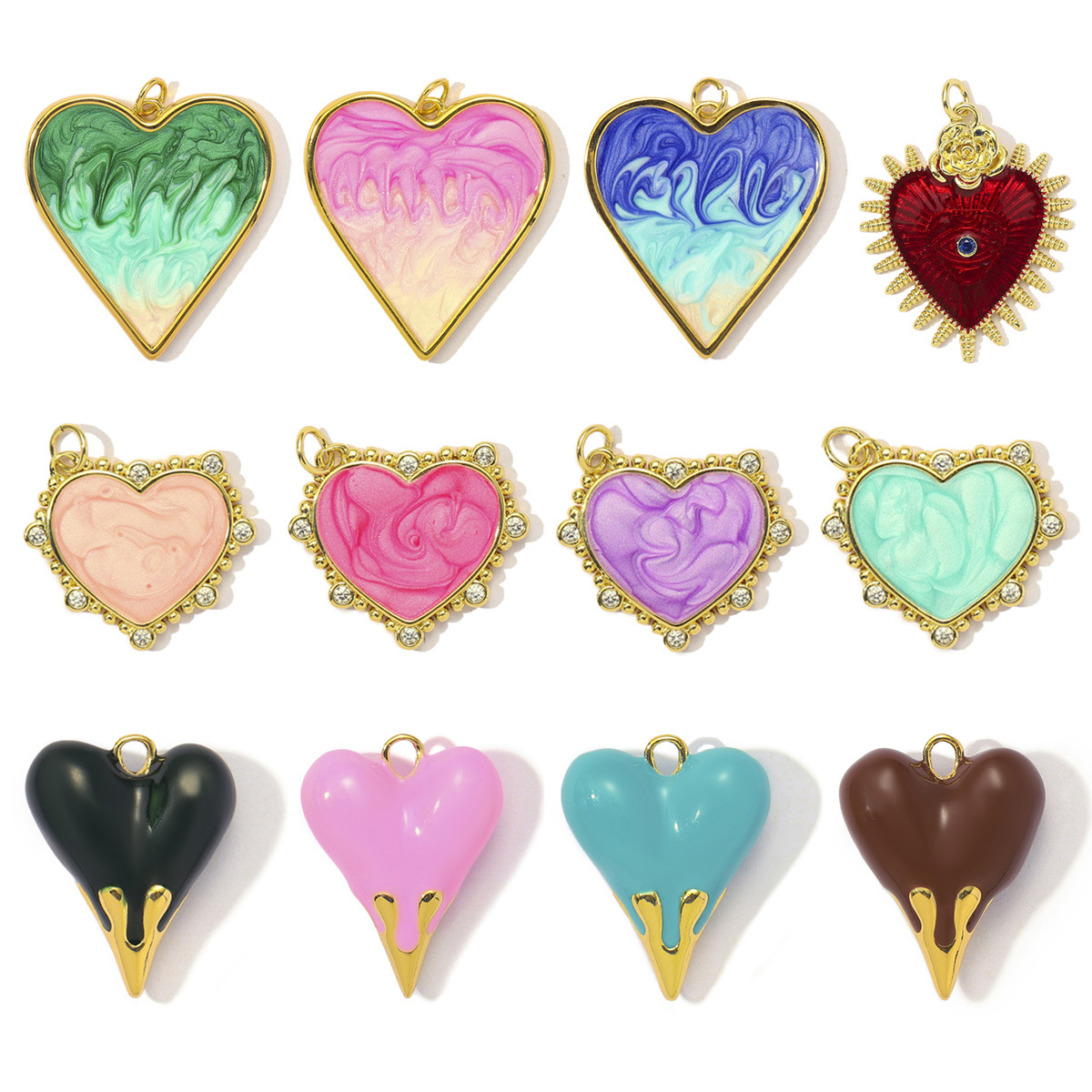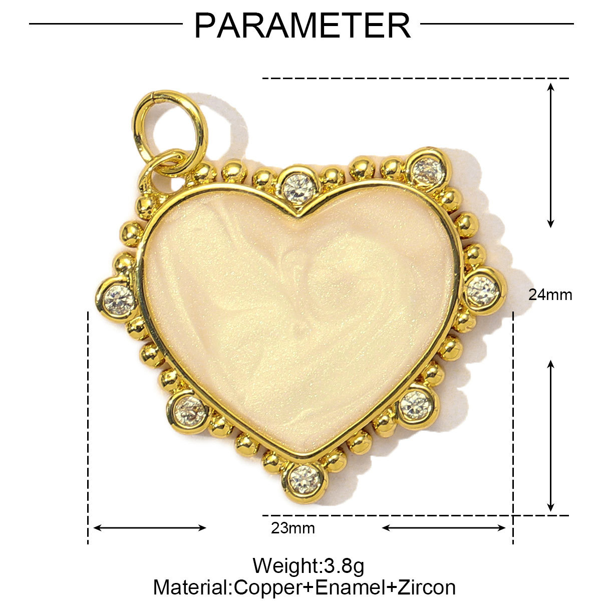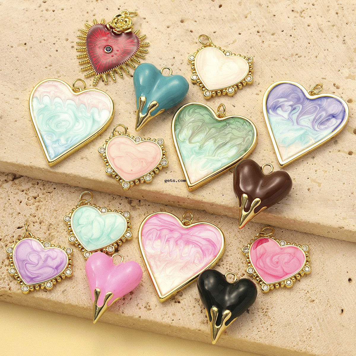 Stainless Steel Heart Pendants, Brass, plated, DIY & micro pave cubic zirconia & enamel, more colors for choice, 3PCs/Bag, Sold By Bag