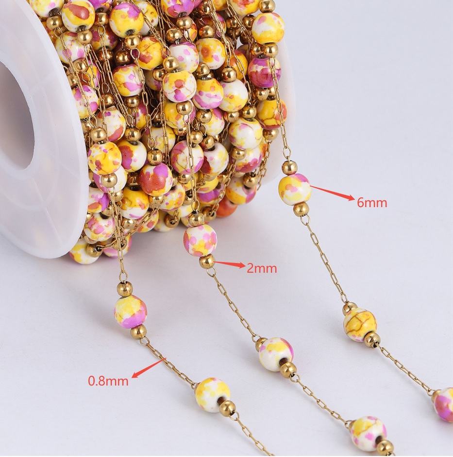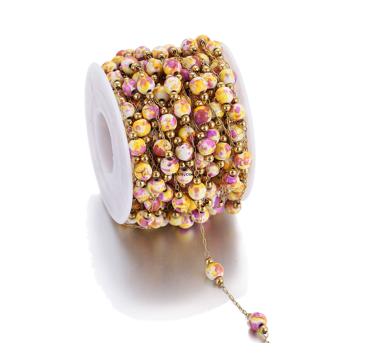 Stainless Steel Jewelry Chain, 304 Stainless Steel, with Gemstone, gold color plated, DIY & different size for choice, more colors for choice, Sold By m