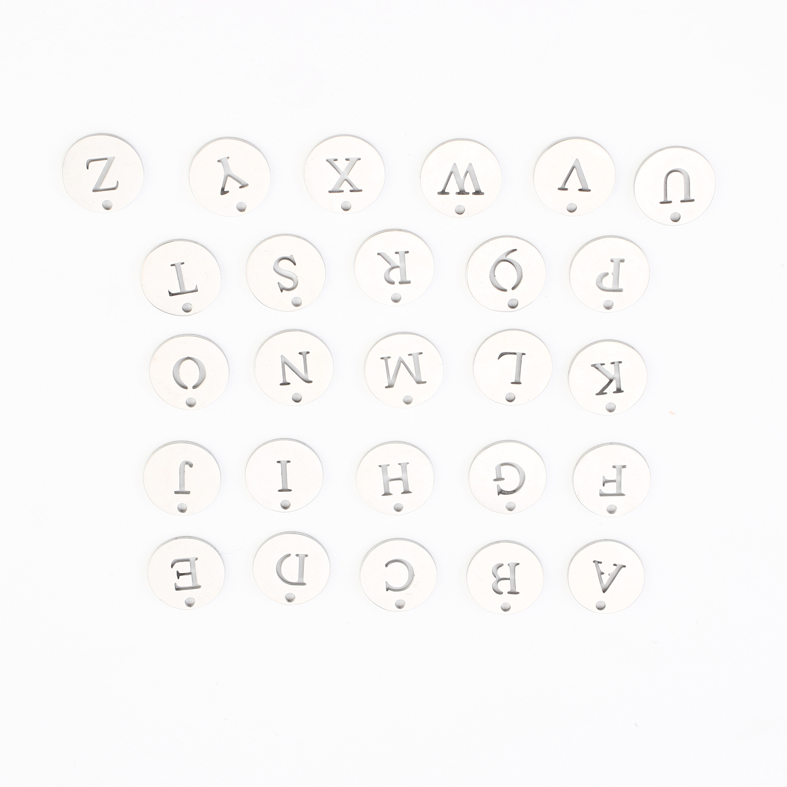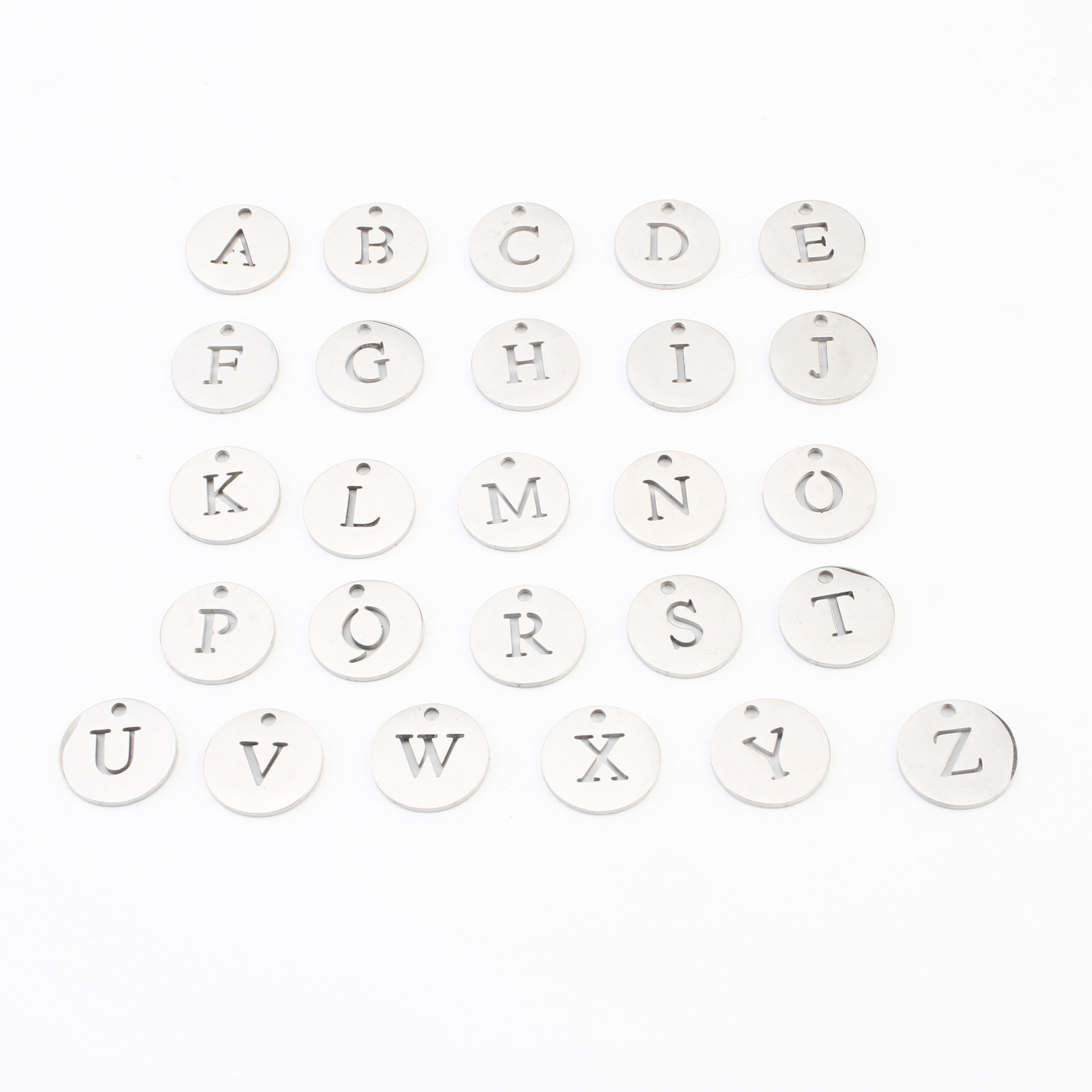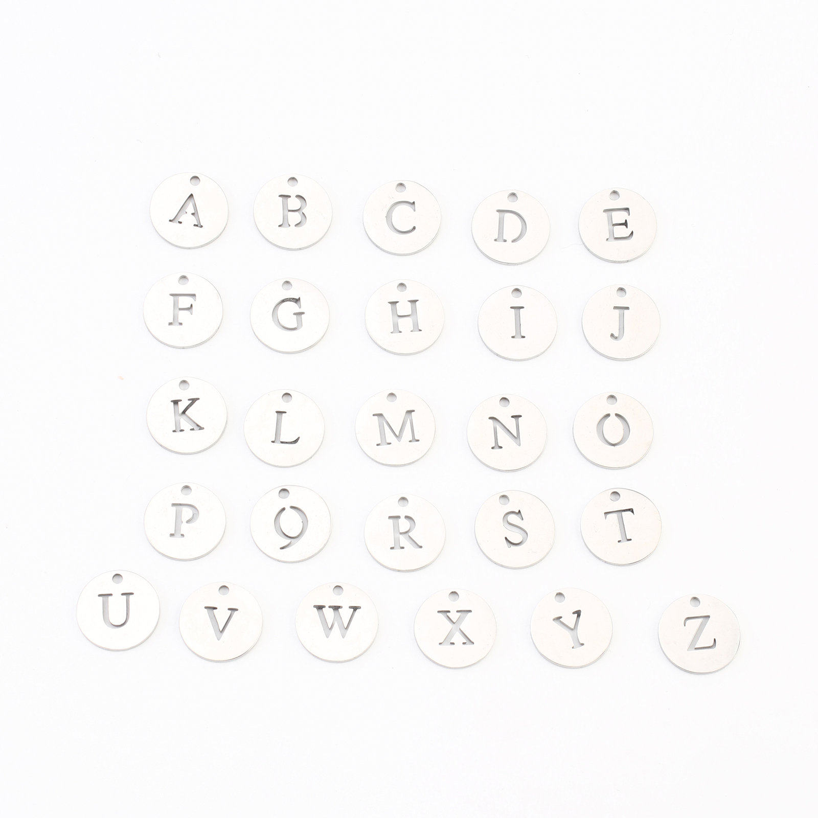 Stainless Steel Letter Pendants, 304 Stainless Steel, Flat Round, DIY & different designs for choice & with letter pattern & hollow, original color, 12x12x1mm, 20PCs/Lot, Sold By Lot