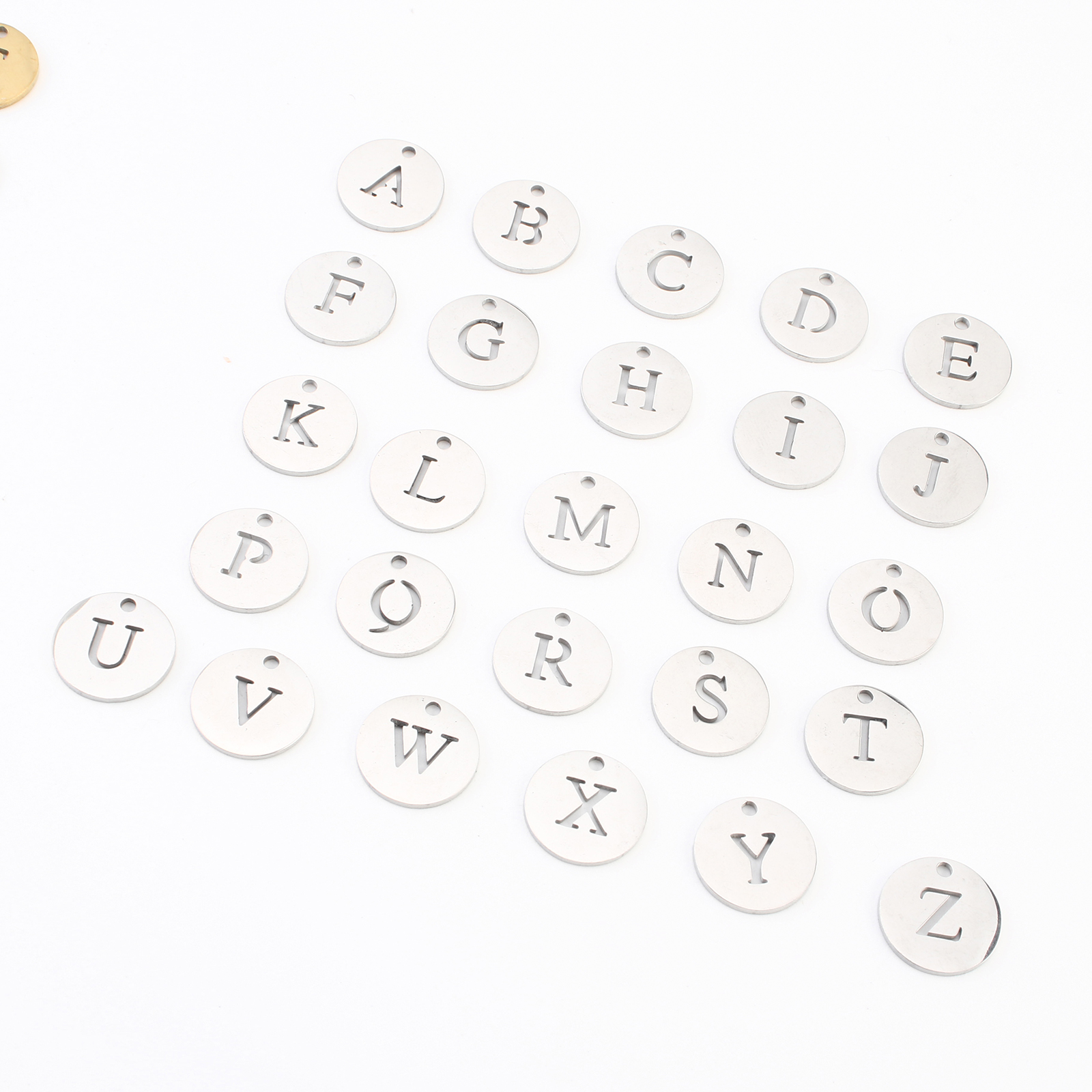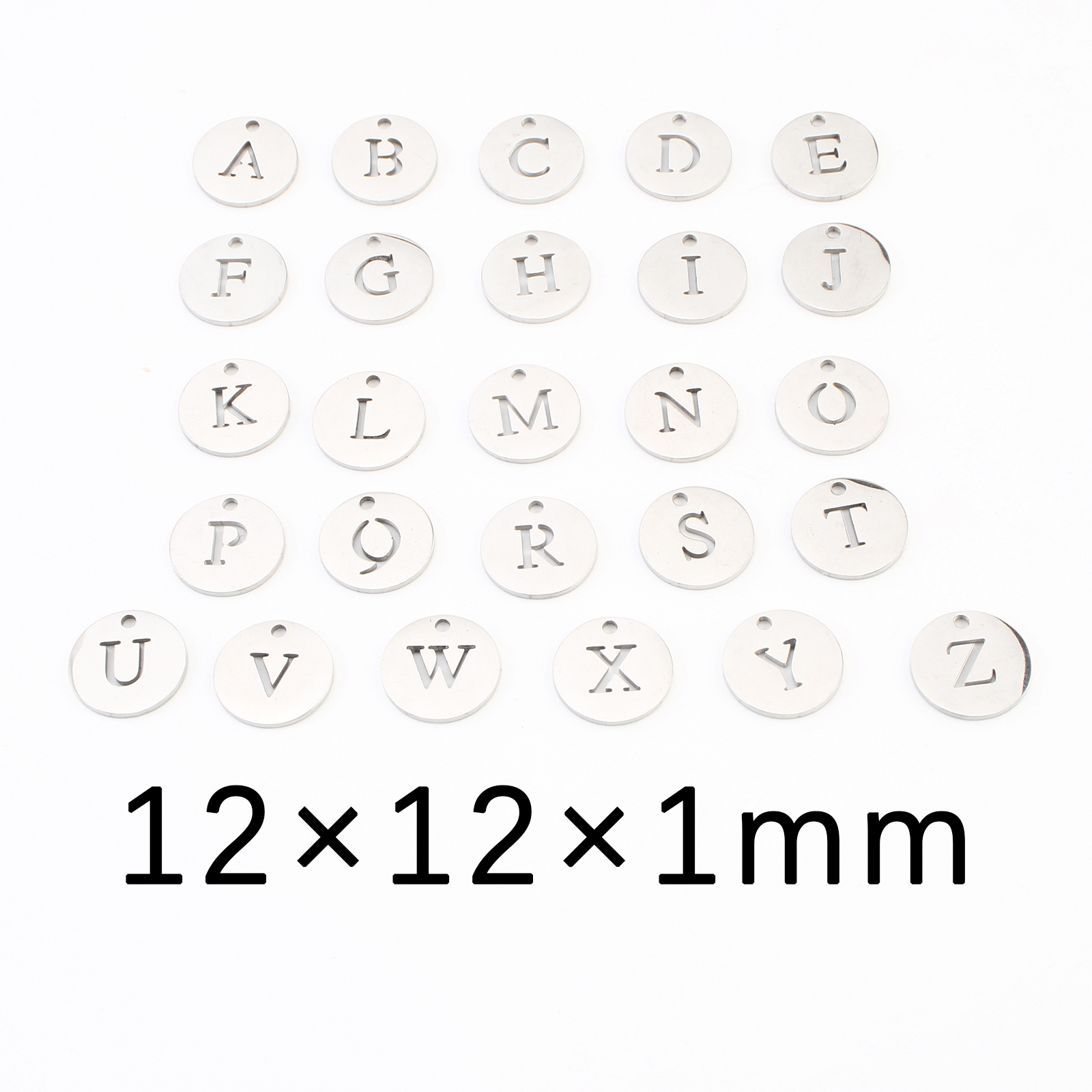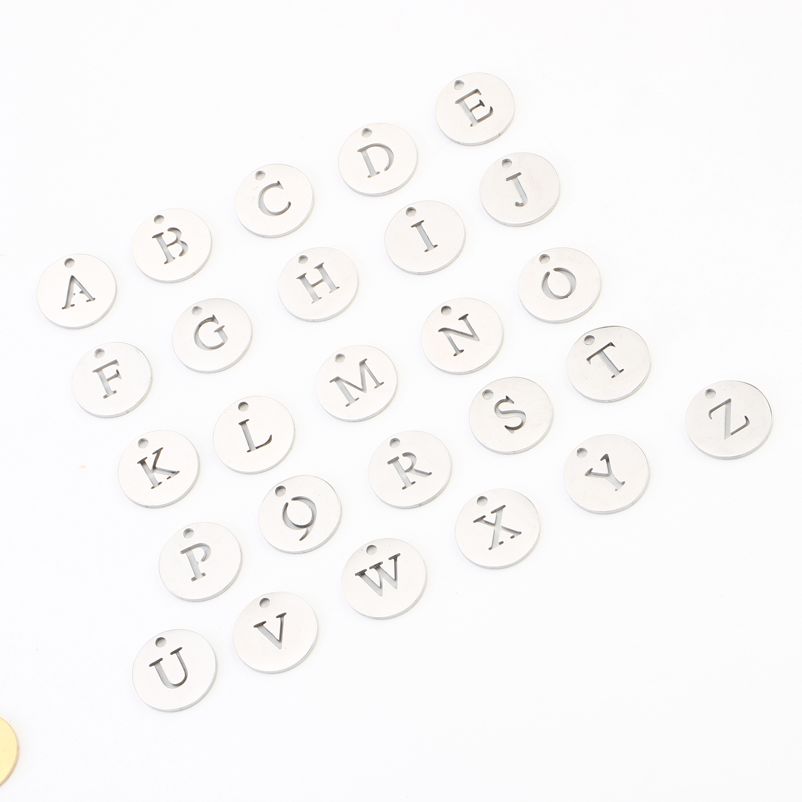 Stainless Steel Letter Pendants, 304 Stainless Steel, Flat Round, DIY & different designs for choice & with letter pattern & hollow, original color, 12x12x1mm, 20PCs/Lot, Sold By Lot