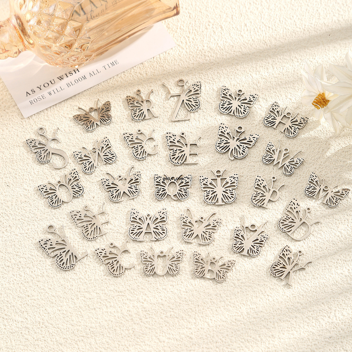 Stainless Steel Letter Pendants, 304 Stainless Steel, Butterfly, DIY & different styles for choice & with letter pattern & hollow, 10PCs/Bag, Sold By Bag