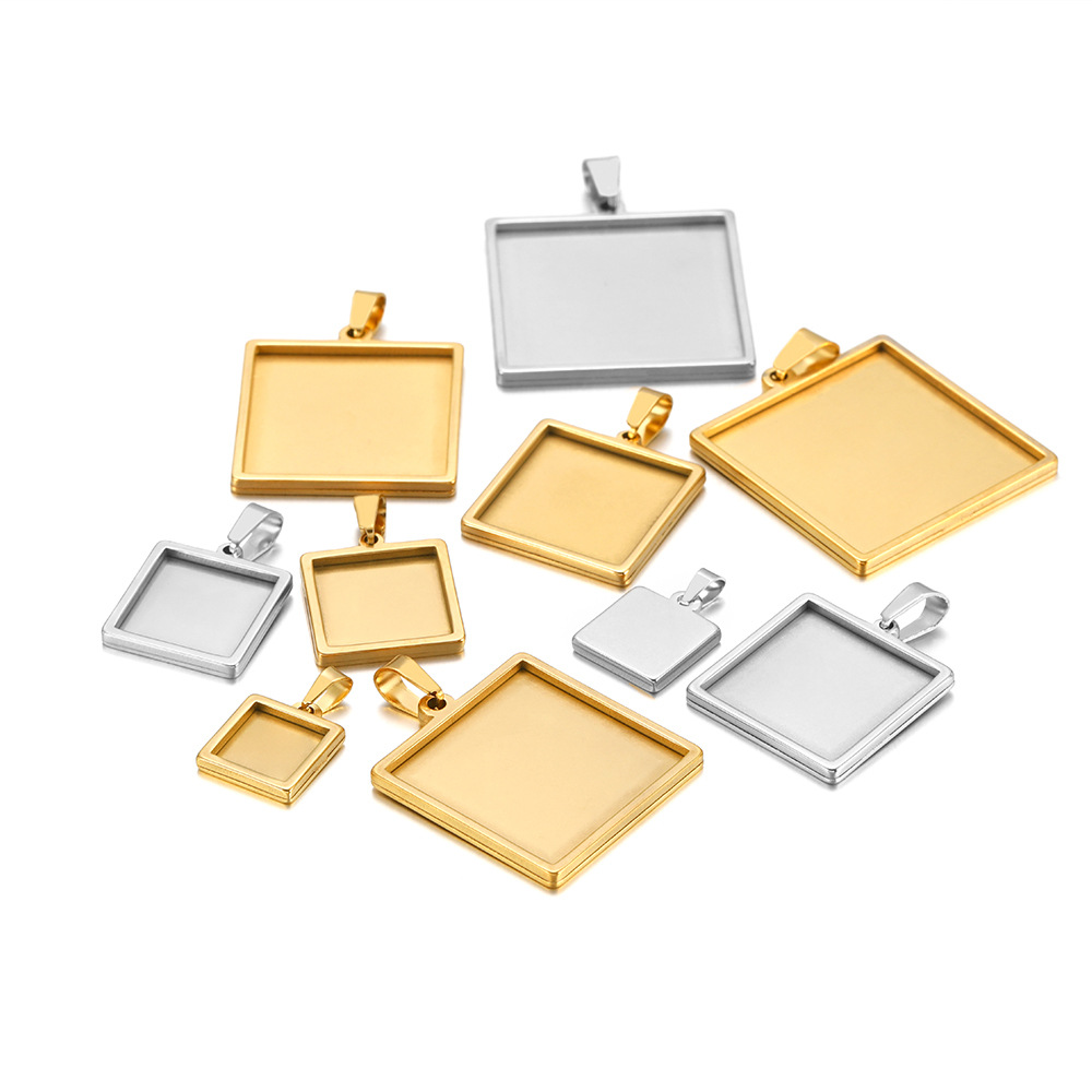 - Stainless Steel Pendant Setting, 304 Stainless Steel, Rectangle