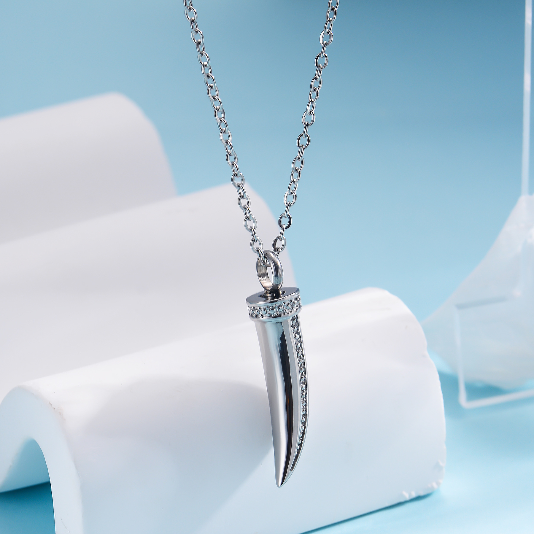 304 Stainless Steel Cinerary Casket Pendant, Wolf Tooth, silver color plated, DIY, silver color, Sold By PC