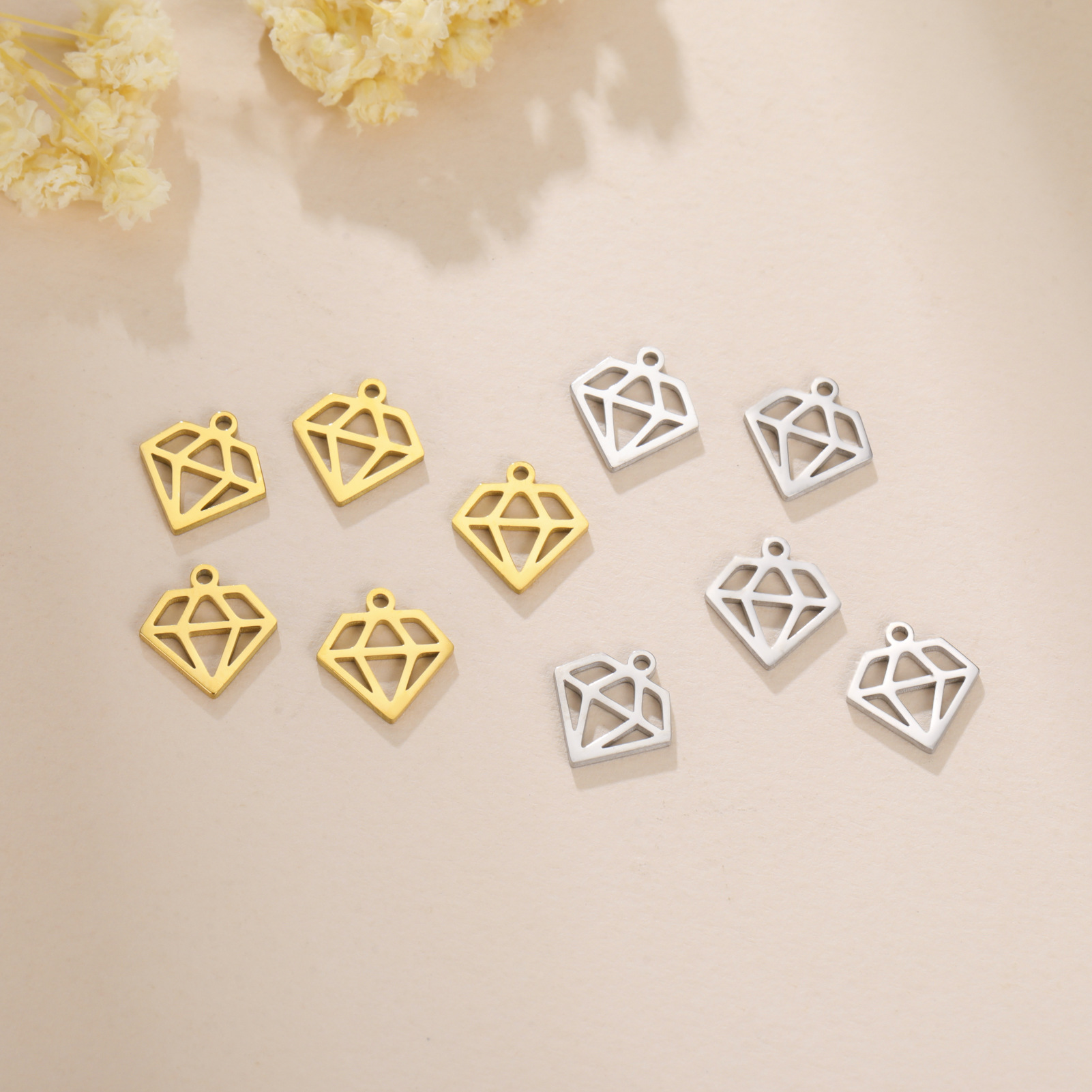 Stainless Steel Pendants, 304 Stainless Steel, Diamond Shape, plated, DIY & hollow, more colors for choice, 10.10x10.50mm, 10PCs/Bag, Sold By Bag