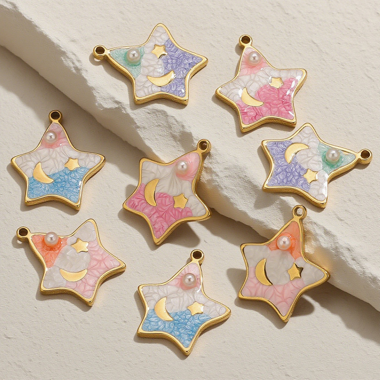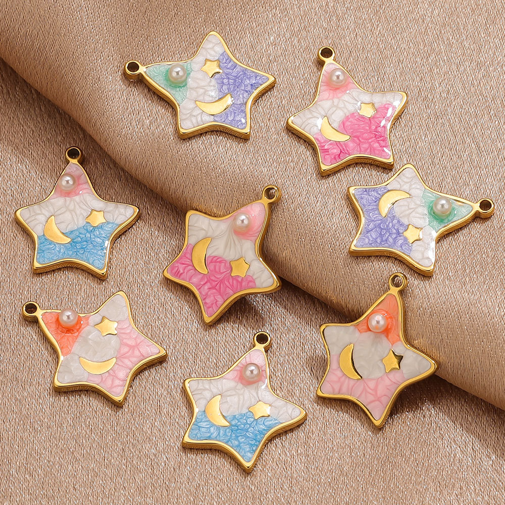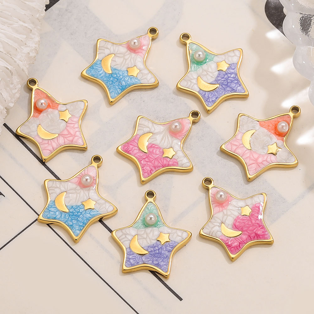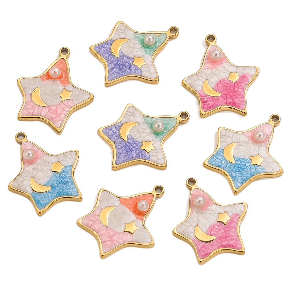 Stainless Steel Pendants, 304 Stainless Steel, with Plastic Pearl, Star, gold color plated, DIY & enamel, more colors for choice, 19x22mm, Sold By PC