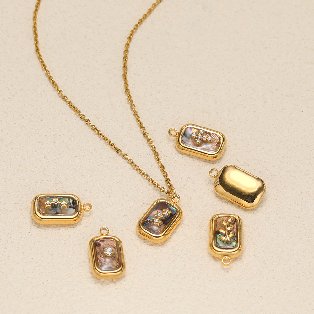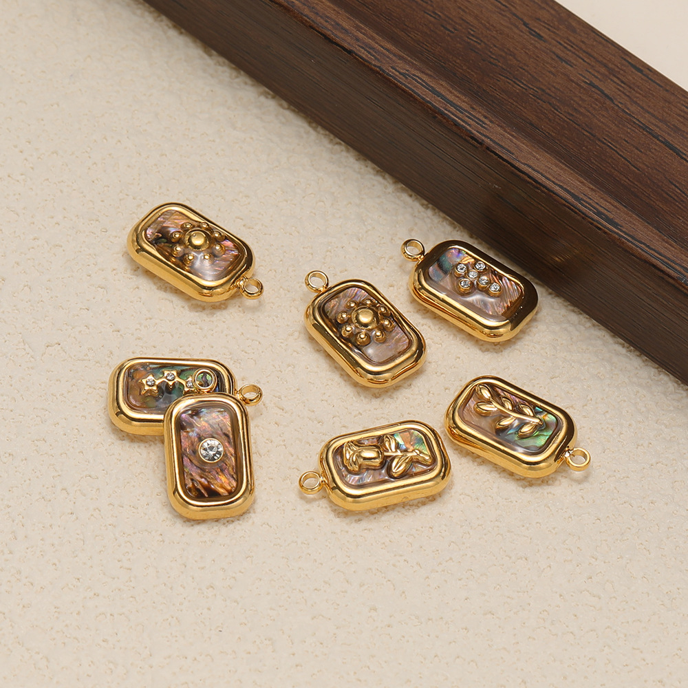 - Stainless Steel Pendants, 304 Stainless Steel, with ABS Plastic Pearl & Gemstone & Shell