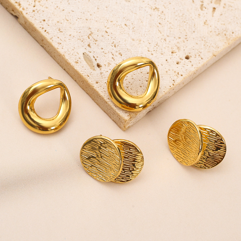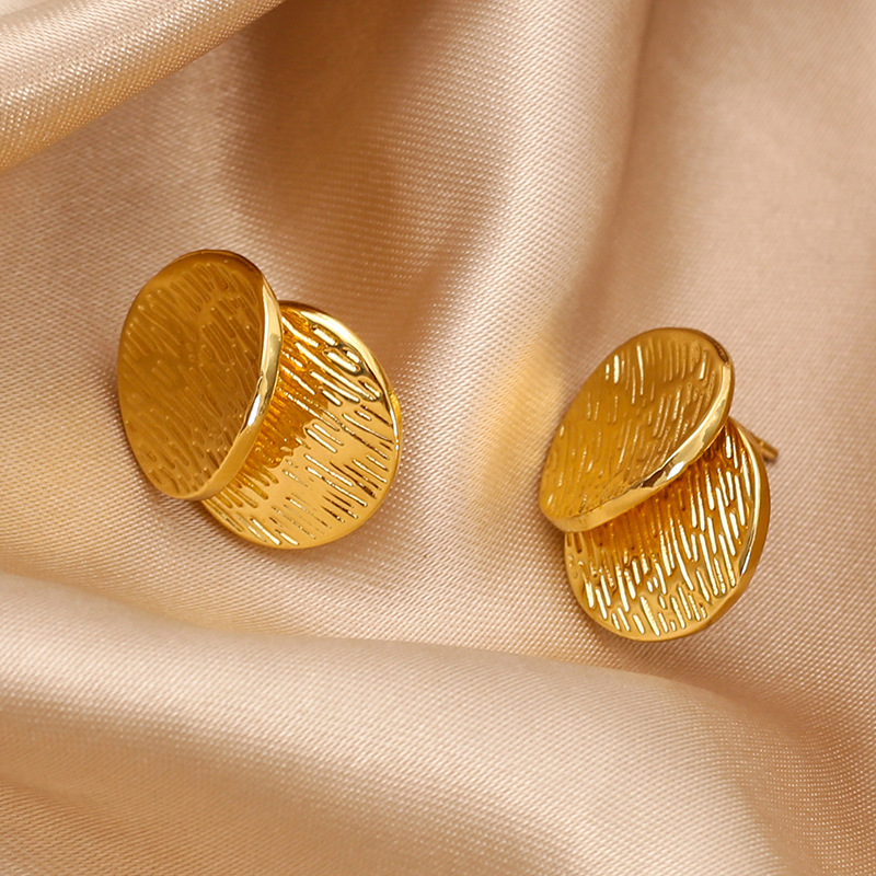 - Stainless Steel Stud Earrings, 304 Stainless Steel, gold color plated