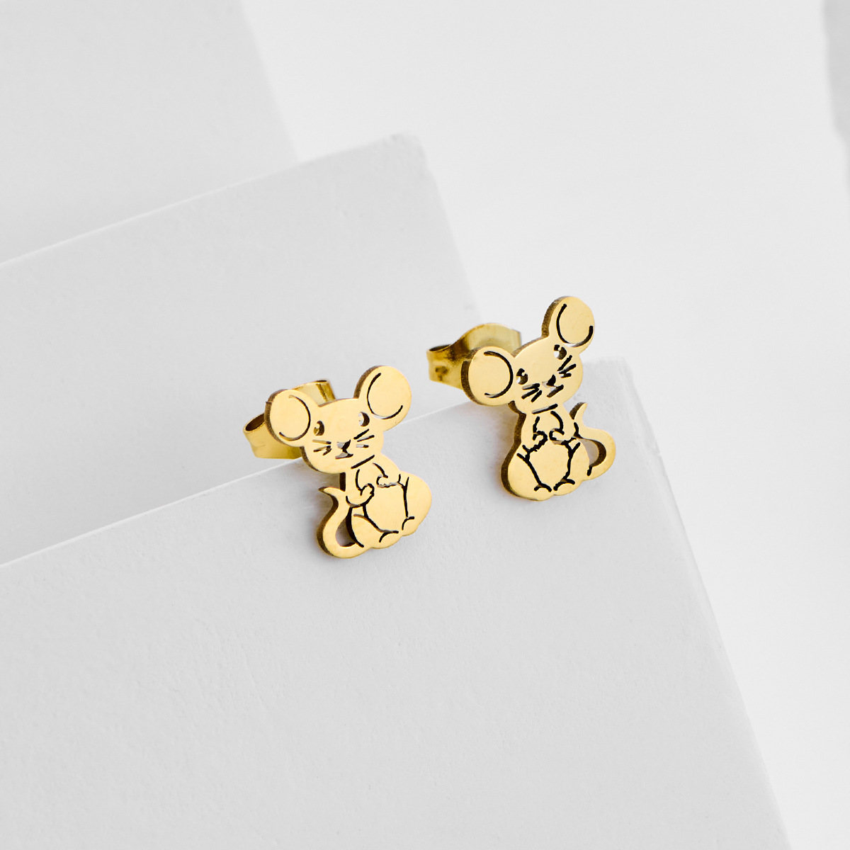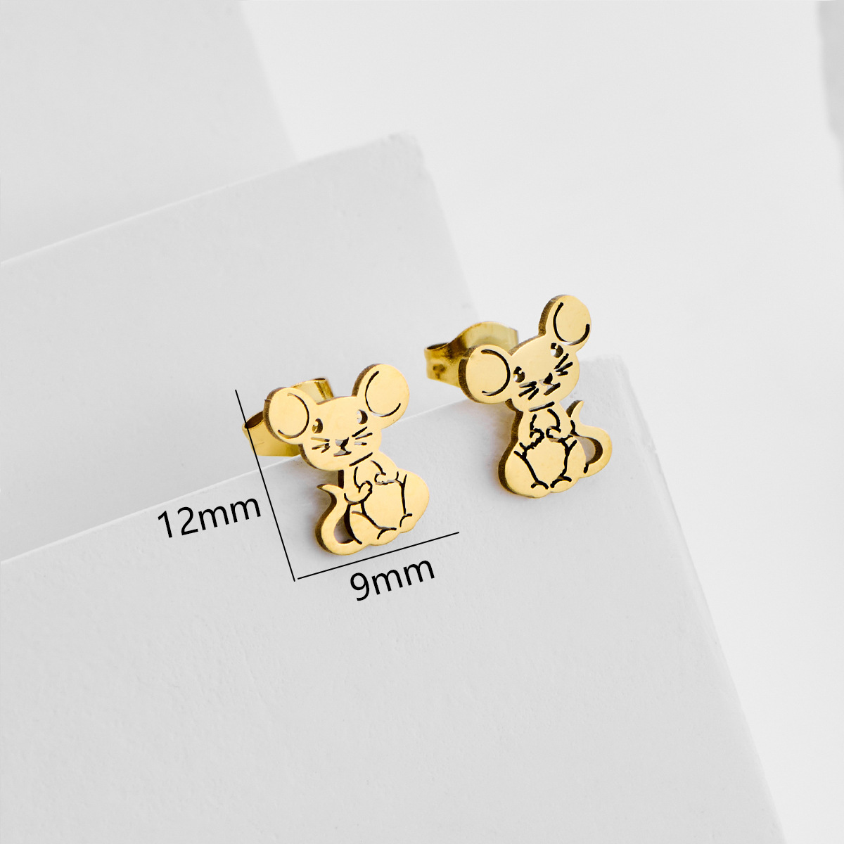 - Stainless Steel Stud Earrings, Dinosaur, plated