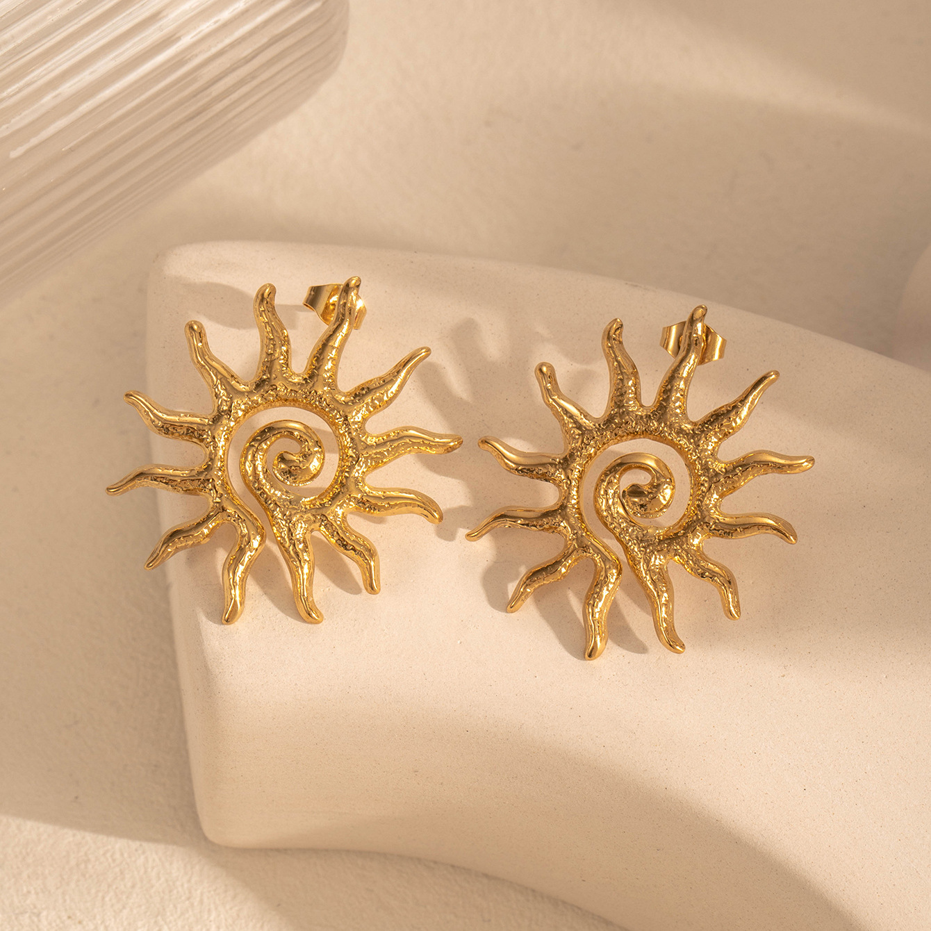 - Stainless Steel Stud Earrings, Lightning Symbol, plated